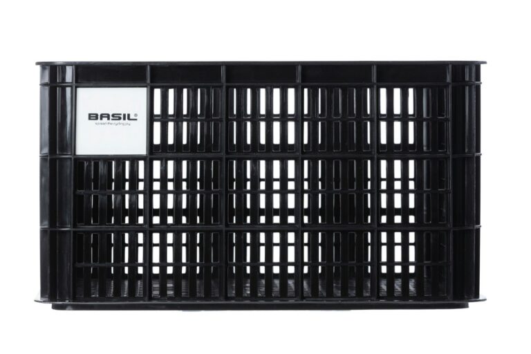 Basil L-size bicycle crate: a sleek black choice for both men’s and women’s bikes. Crafted from sustainable materials, this crate boasts a 40-litres capacity.