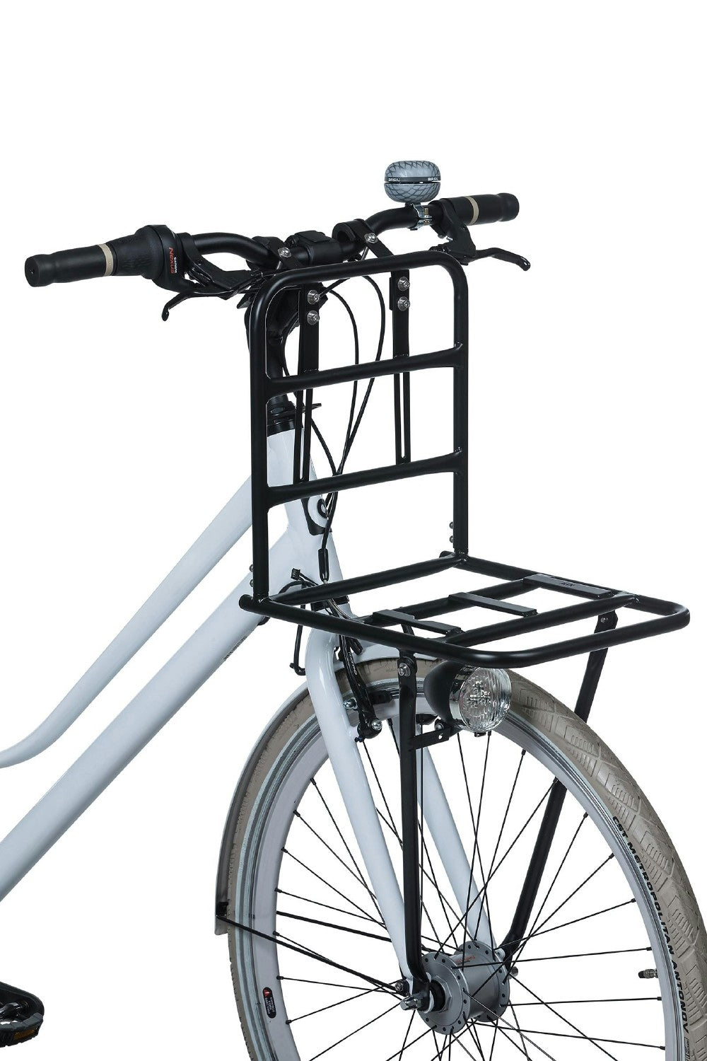 Discover the Basil Front Carrier L – a classic black carrier designed to enhance your bike’s carrying capabilities and elevate your cargo-carrying potential. This large and robust carrier effortlessly accommodates front-mounted baskets and crates, making it the ideal choice for turning your city bike into a versatile machine for all your errands. Installation is a breeze; simply mount the carrier to your bike’s front axle using the provided brackets. For a personalized fit, the carrier comes with two adjustable steering hooks, adaptable between 21 and 31.8 mm.