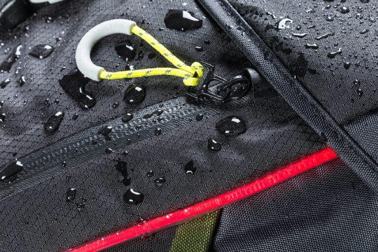 Conquer the elements with confidence, as this waterproof bag features a reliable roll-top closure, safeguarding your belongings against heavy rain showers during your cycling adventures. Stay organized with multiple compartments perfect for accommodating books, smartphones, pens, and more. Unveil your visibility in low-light conditions through the Nordlicht Technology* integrated into the bag’s front—an LED strip operated with a simple push button.