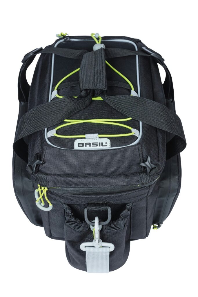 Discover the ultimate bag designed with your needs in mind – the Basil Miles XL Pro trunkbag. This sporty and waterproof bag offers an array of practical features. With its two foldable, waterproof side pockets and expandable top compartment, you’ll have plenty of storage space. From its initial 9-litres capacity, you can expand it to a remarkable 36 litres. The bag’s thoughtful design includes lime details, an insulated pocket for your water bottle, and extra dividers to organize your belongings. Keeping your refreshments cool is made easy with two compartments for cooling packs.