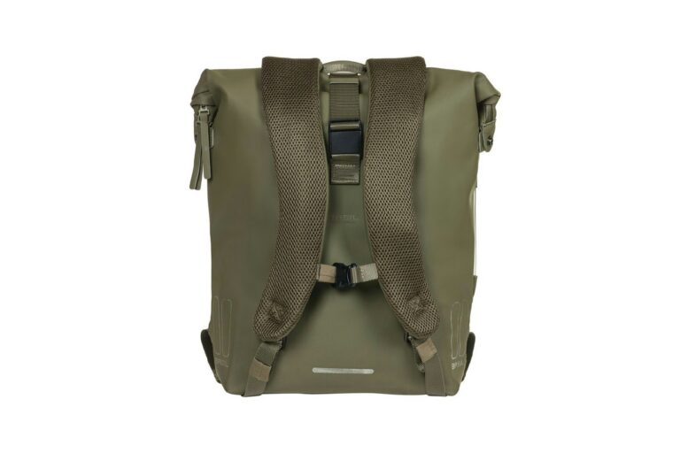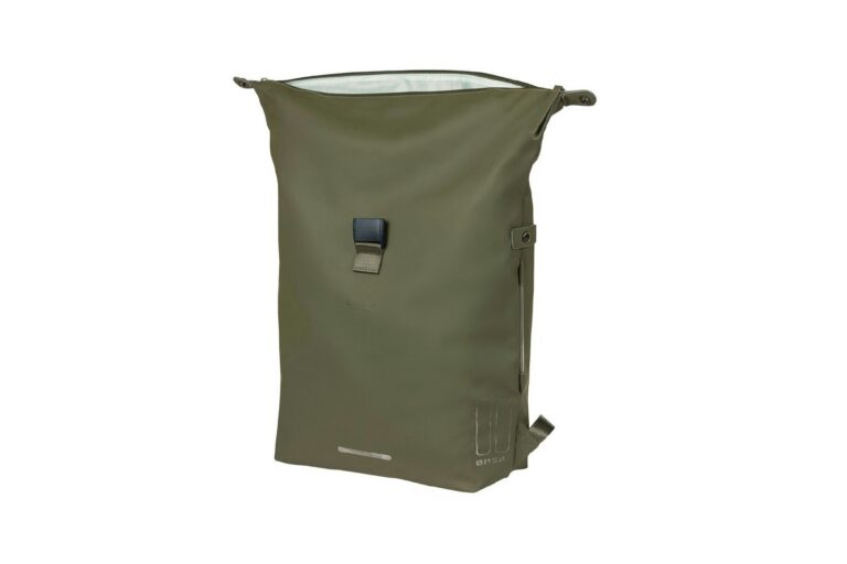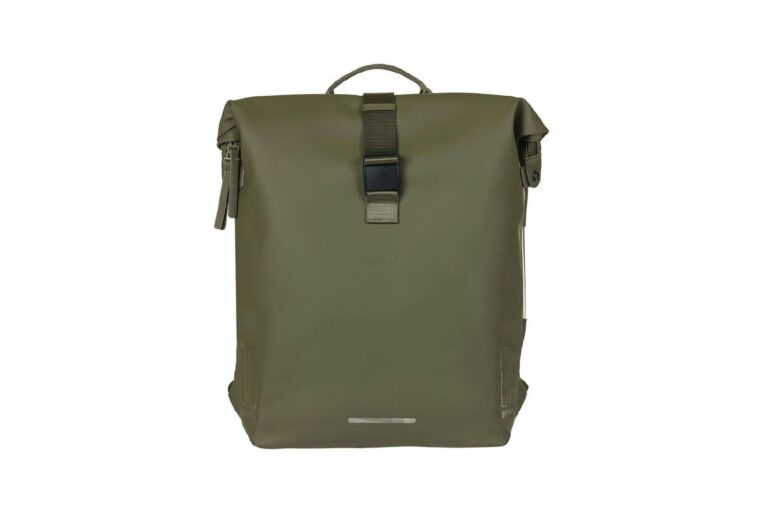 Discover urban excitement with the Basil SoHo Nordlicht bike backpack, a companion that ensures you’re always ready for whatever comes your way. This verdant bicycle bag boasts an array of ingenious features. Among these, an integrated LED strip* enhances your visibility during nighttime adventures. Moreover, the bag boasts an impressive waterproof rating (IPX3), shielding your belongings from even the slightest intrusion of water. This watertight design is reinforced by taped seams and a roll closure. The bag’s sides, fashioned from velvety PU material, exhibit a tactile softness that’s as pleasing as it is functional.
