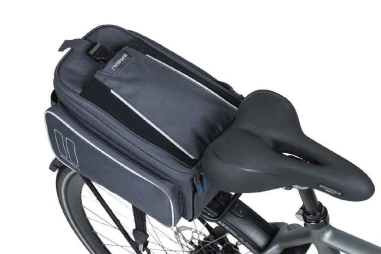 Meet the Basil Sport Design Trunkbag – a versatile luggage rack bag that suits both regular bicycles and e-bikes with equal finesse. This elegant grey luggage bag is meticulously crafted for seamless compatibility with luggage carriers, making it the ultimate choice for cycling enthusiasts who revel in extensive bike rides while keeping their essentials at arm’s length. Whether it’s your hydration partner, a tablet, or your trusty smartphone, rest assured that your valuables will remain impeccably safeguarded. Ranging from 7 to 15 litres, the expandable capacity provides ample room for all your prerequisites. Crafted from water-resistant polyester, the exterior promises durability, while the inner lining fortifies protection. Boasting various compartments and expandable side pockets secured with zippers, accessing your belongings is effortless. The bag also offers a convenient handle and a detachable shoulder strap, ensuring you can carry it wherever your adventures lead. Reflective trims further amplify visibility during nocturnal escapades or under limited lighting conditions, making safety a top priority. Explore Basil’s comprehensive selection of bicycle storage solutions and accessories in our online store today.