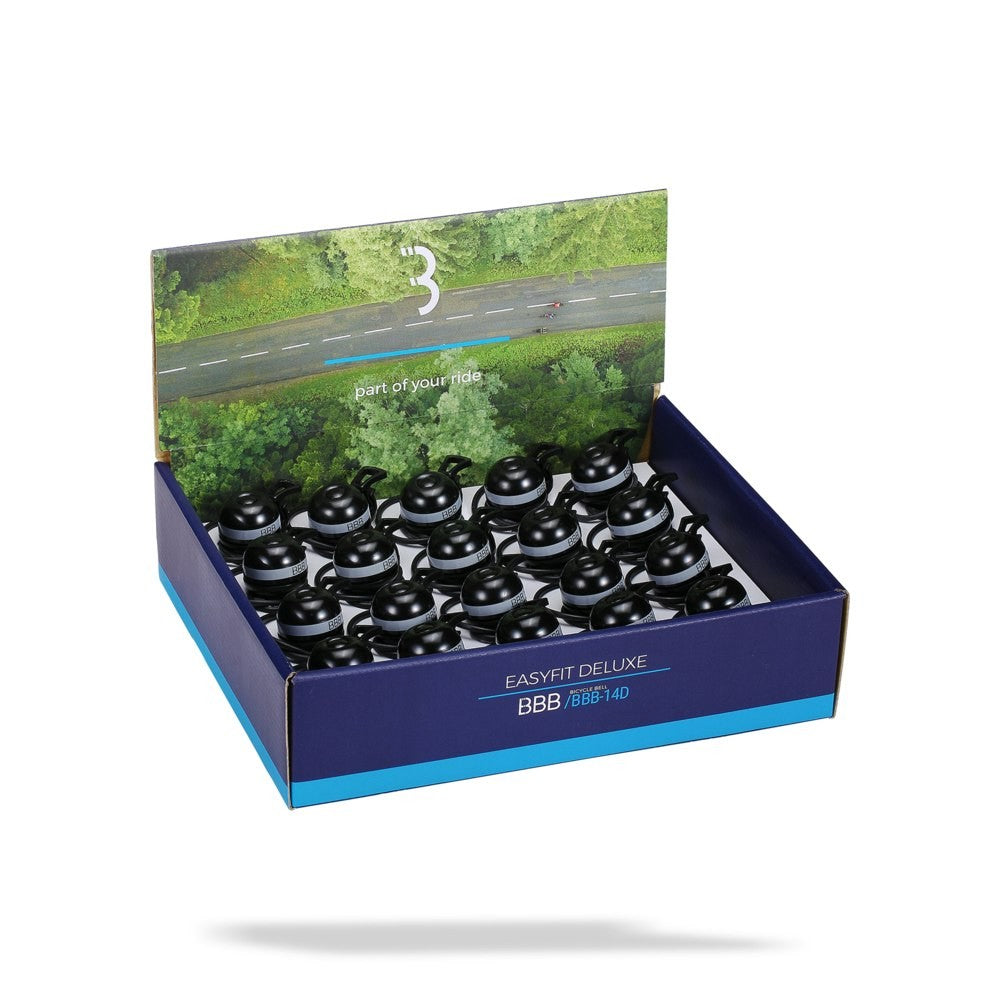 BBB Cycling BBB-14D Bell Easy Fit Deluxe Display Box 20 Pcs - Black/Grey