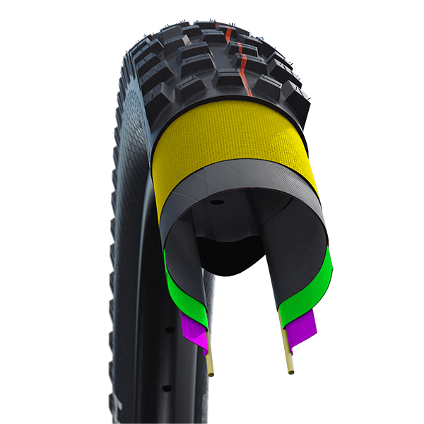 Our most versatile construction, built for riding on all trails. Reliable puncture protection paired with high lateral stability at low air pressures. Extra reinforced sidewalls protect against punctures and dampen impacts. For anyone looking for unbridled fun on endless trails.