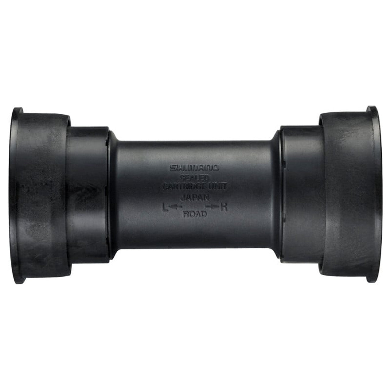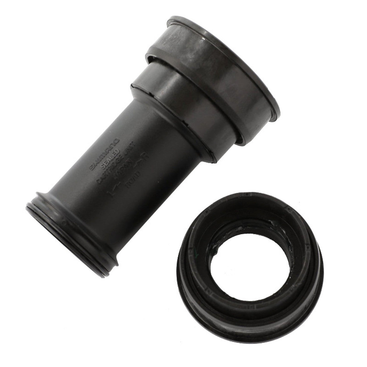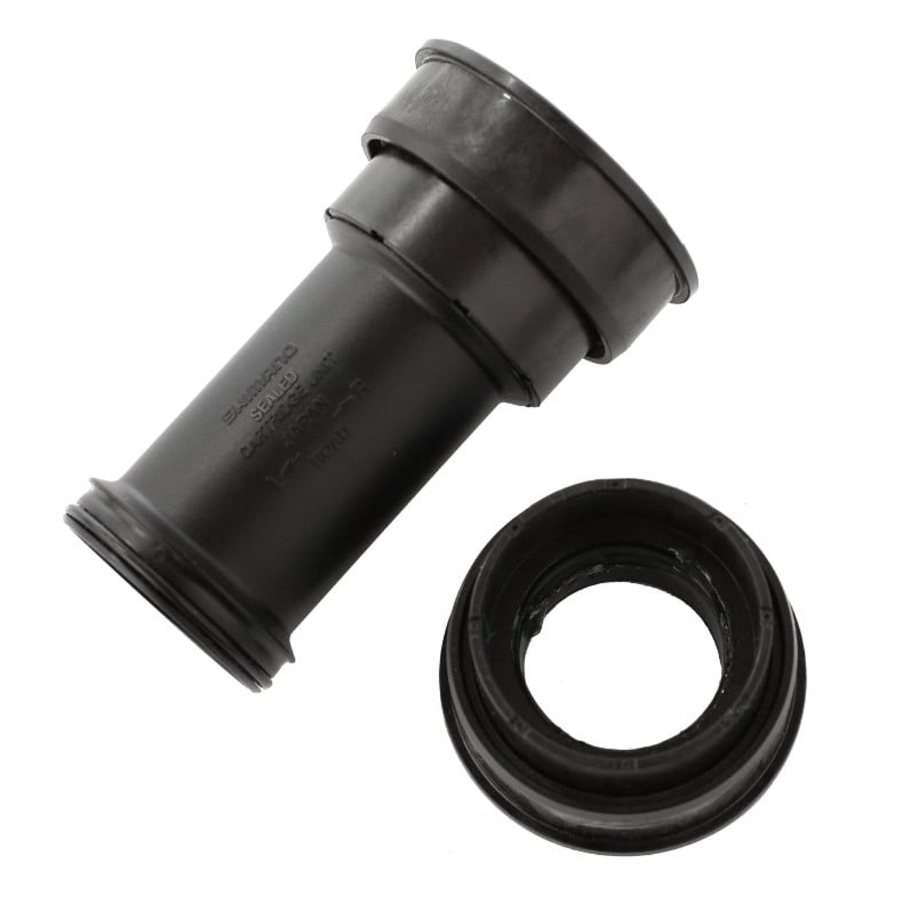 Made to press right into your bike this Shimano BB92 Bottom Bracket will mate your Shimano HollowTech crankset to any frame equipped with a BB92 bottom bracket shell. It comes with two steel cartridge bearings pressed into composite cups. The cups increase the outside diameter of the assembly to 41mm to match the I.D. of the frames' bottom bracket shell. Being part of the new press-fit standard there is also a 1.75mm thick outer lip that provides a positive stop for the cups when you press them into place. Shimano includes their standard plastic O-ringed inner sleeve to protect against water damage should any find its' way inside your frame. It also uses black plastic dust shields that snap into the inner race of each bearing.
