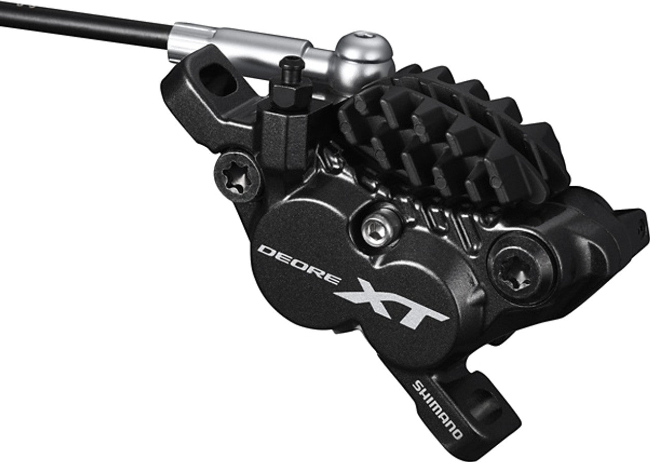 The new Shimano Deore XT M8020 4 piston disc brake caliper significantly (+10%) increases braking capacity over the M8000, making it perfect for aggressive trail riding and further elevating enduro and cross country riders' performance on demanding trails or race circuits.