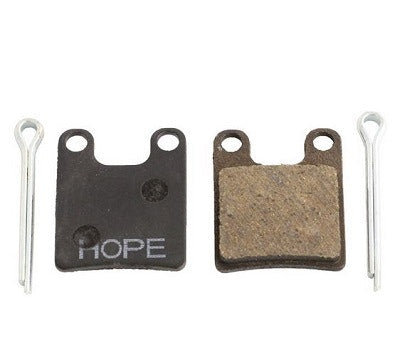 Organic brake pads have a softer braking sensation, are silent in wet conditions and put less thermal stress on the brake. They do wear faster and provide less braking power than sintered brake pads. Suited for Hope Mini calipers.