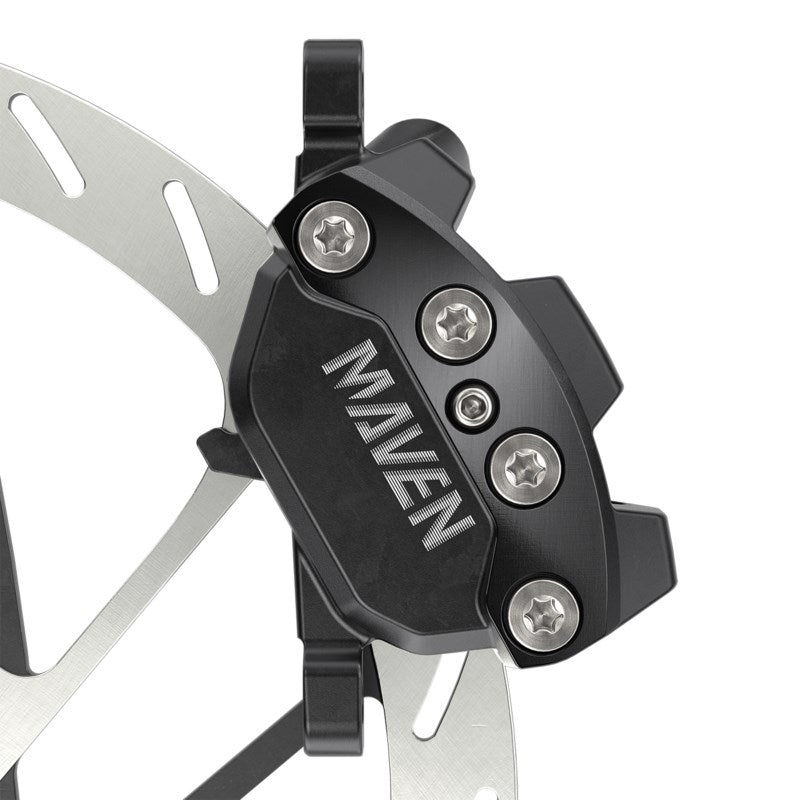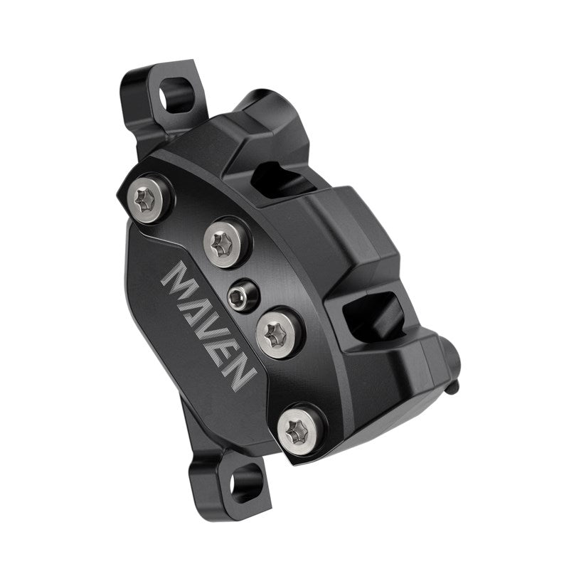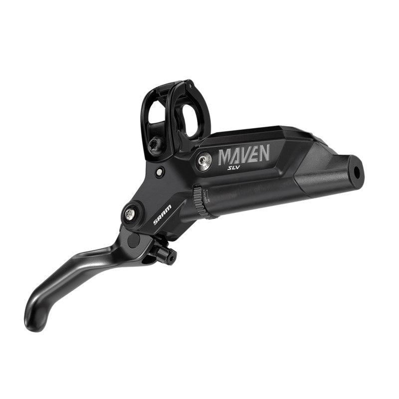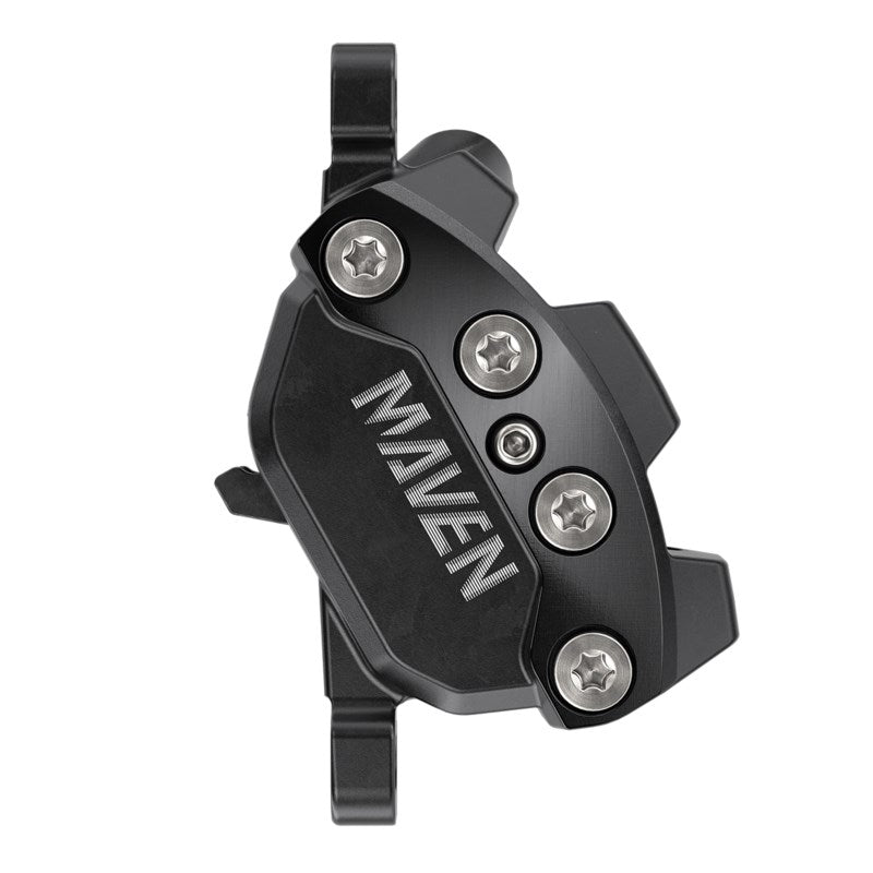 SRAM Disc Brake Maven Silver - Aluminum Lever, Stainless Hardware, Reach/Contact Adj,SwingLink, Black Front/Rear 2000mm Hose (includes MMX Clamp,20P-2 Bracket,Bleeding Edge Tool) A1Modern mountain bikes have redefined what riders are capable of, pushing the requirements for heavy-duty power further than ever before. Maven Silver is our answer to that evolution, with monstrous 18 and 19.5-millimeter pistons driving 50% more power than Code. But best-in-class power means nothing unless you’re able to harness it. Swinglink translates rider input for progressive power throughout the lever pull, maintaining SRAM’s signature ride feel. And because of a stiff 4-bolt caliper that sheds an incredible amount of heat, that feel remains consistent, so the last corner feels like the first corner. But with so much baseline power on hand, there is more range than ever before to tune the ride qualities to exactly how you want with different pad materials, and rotor sizes. Maven Silver features a bold black anodized finish with stainless hardware. And for unrivaled ease of customization, features tool-free Reach and Contact Point Adjust.