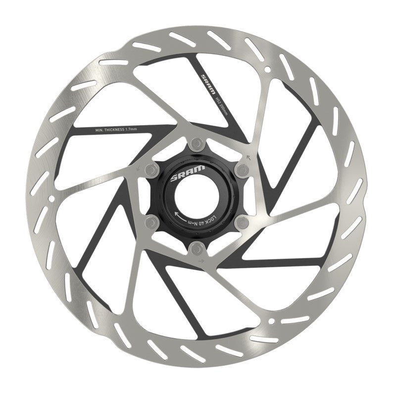 SRAM Rotor HS2 160mm Center Lock Rounded (includes external tooled lockring)The all new HS2 Rotor is a mountain bike specific rotor designed to improve brake performance while reducing noise and increasing heat dissipation. Featuring a new brake track pattern for increased pad traction and recessed spokes with thermal dissipating paint, the HS2 is a more powerful, quieter rotor with best-in-class heat management.Thicker 2.00mm rotor