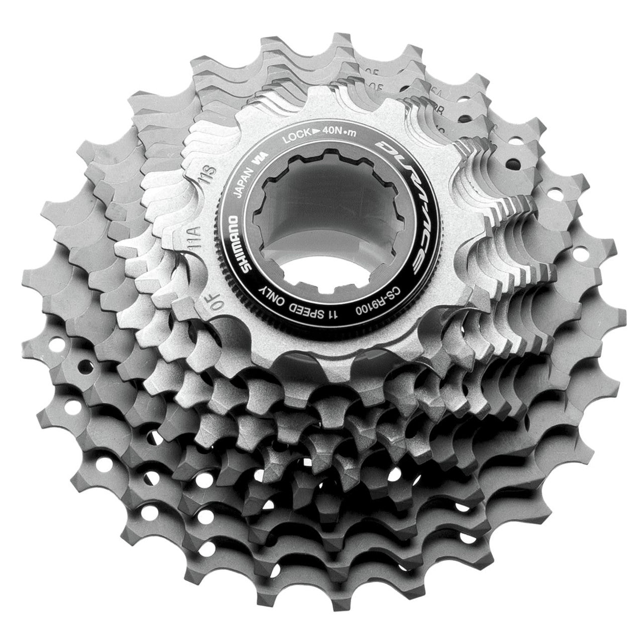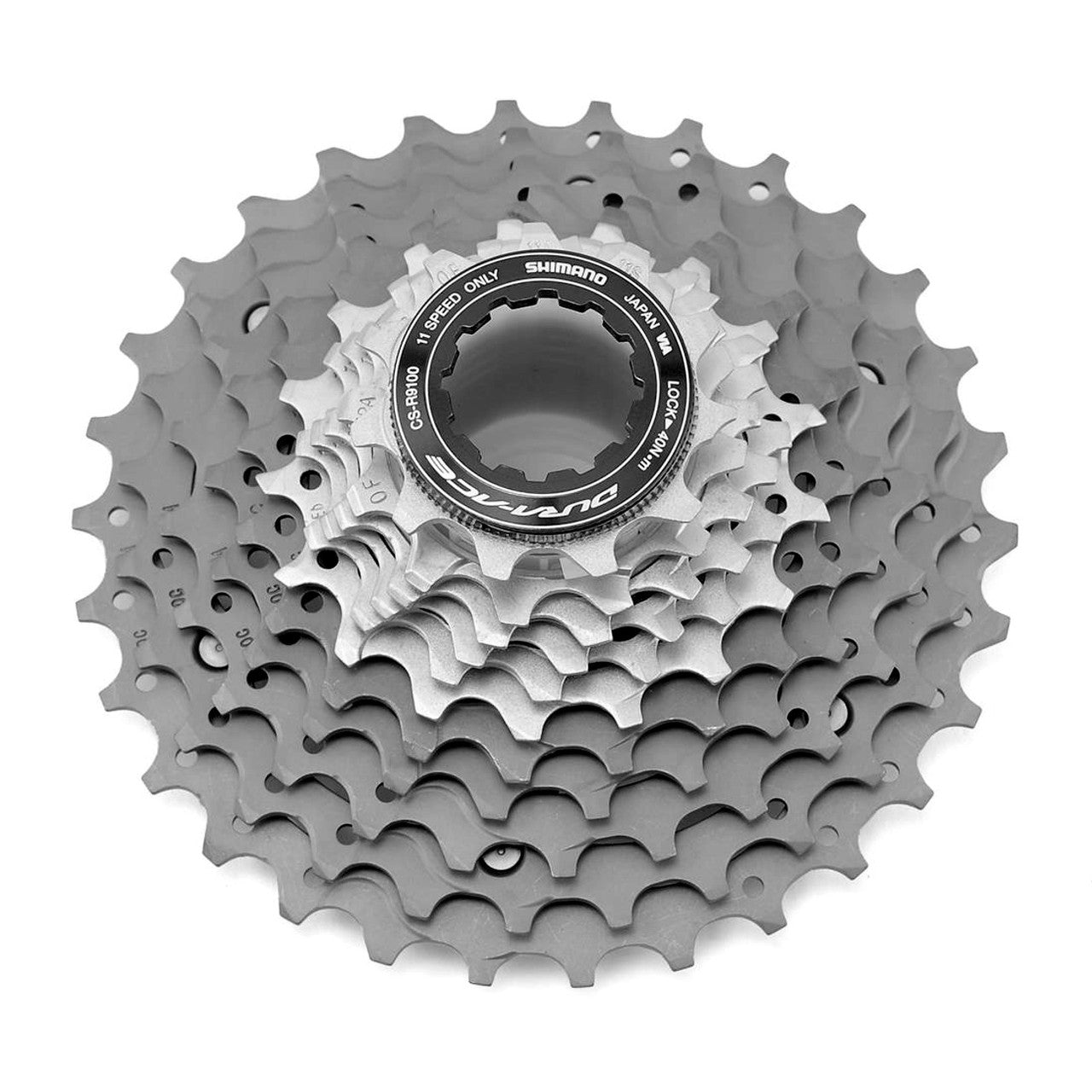 Match your riding style as well as your chosen terrain with Shimano's lightweight Titanium Dura Ace CS-R9100 11-Speed Cassette. New combinations of gearing options have been added including expanded choices for gearing appropriate to wheels, climbers, and the punchers who demand the best of both worlds, but the cassette's feathery construction combination of titanium and nickel-plated steel cogs (along with alloy and carbon carrier) remain tried, true and unaltered. The CS-R9100 Shimano 11-30T cassette with hyper-glide is most definitely a welcome addition to the cassette line up and provides the Dura Ace R9100 series, on the back end of the drivetrain, with a wider range of graduation, along with fast, accurate and smooth shifting in all situations. No matter if, you are up shifting or down shifting, the Dura Ace R9100 cassette stands out above all others through its' reliable and easy shifts.. Smooth running and reliable 30T, 11SP Cassette