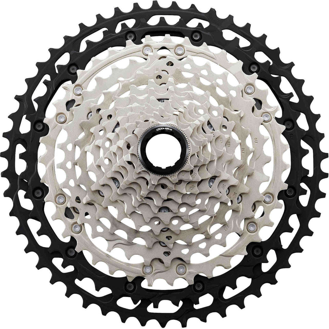 DEORE XT 12-speed cassettes come with the MICRO SPLINE fitting system and are available in a 10-45T option for small gear steps or a 10-51T option for maximum range. Both cassettes also feature HYPERGLIDE+, allowing for quick up and downshifts and an extremely quiet drivetrain. The cassettes have an aluminium spider to house ten steel sprockets and two aluminium sprockets for optimum durability and weight. The CS-M8100-12 10-51T cassette weighs 470g and the 10-45T option weighs 461g.. New shift ramp designs provide the fastest, smoothest shifts by HYPERGLIDE+
