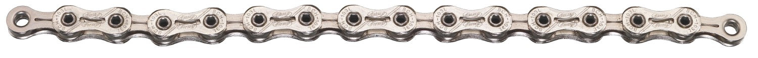 Self lubricating feature. A unique treatment applied to the chain results in reduced friction.
