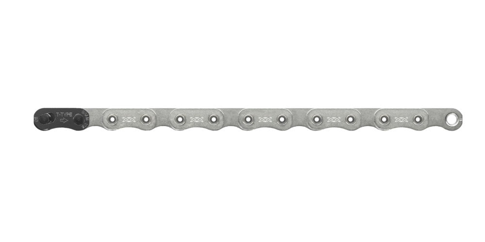 SRAM Chain XX T-Type Eagle Silver HollowPin 126 links w/PowerLock T-Type PVD 12 speed 1PCThe first thing to know about the XX Eagle Transmission chain is that it’s the strongest we have ever made. Specifically engineered to optimize Eagle Transmission, this all-new T-Type design features a unique flat top. Not only does this shape maximize shifting performance, but it also contemporizes the look of your super bike. The chain features a hollow pin design and is finished in a long-wearing, high durability chrome