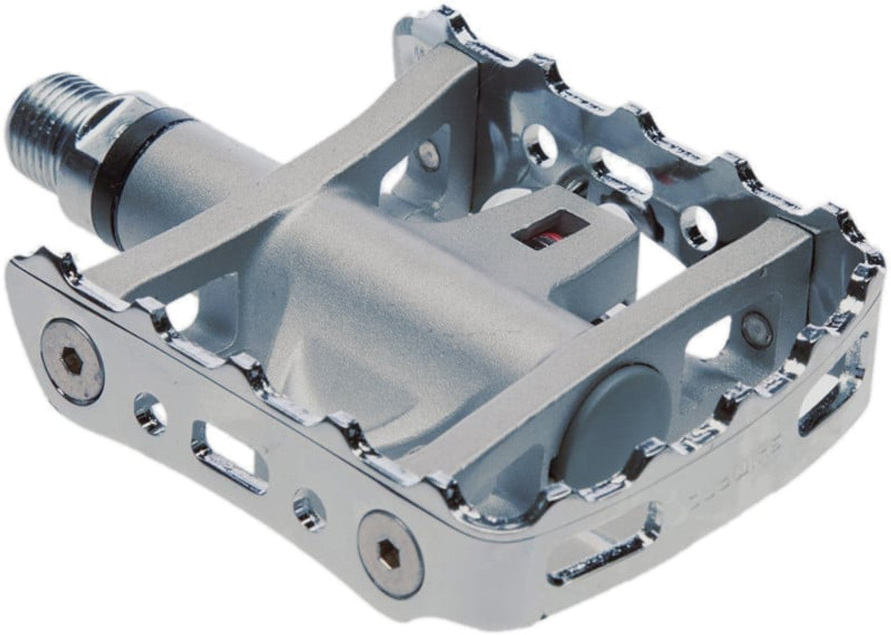 An ideal pedal for riders who want clipless pedals and also need one that suits normal shoes without the need to change pedals.It combines the SPD mechanism on one side and flat pedal body on the other and has adjustable cleat tension to suit all levels of skill.. SPD Pedal System