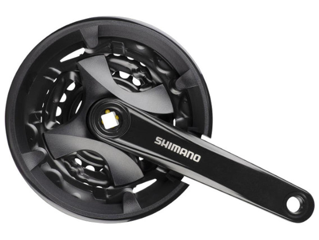 FC-MT101 crankset for square tapered bottom brackets features a rigid 2-piece construction.