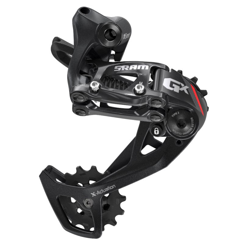 SRAM Rear Derailleur GX 2X11-Speed Medium Cage RedLeveraging the legendary history of SRAM shifting, the GX 2x11 rear derailleur provides incredible shifting speed and precision. X-ACTUATION™ technology eliminates slop and shifting variation. ROLLER BEARING CLUTCH™ technology delivers maximum drivetrain stability-even through the most punishing terrain. And with CAGE LOCK™ technology, wheel removal and installation are easier than ever.GX provides the widest 2x11 gear range available.