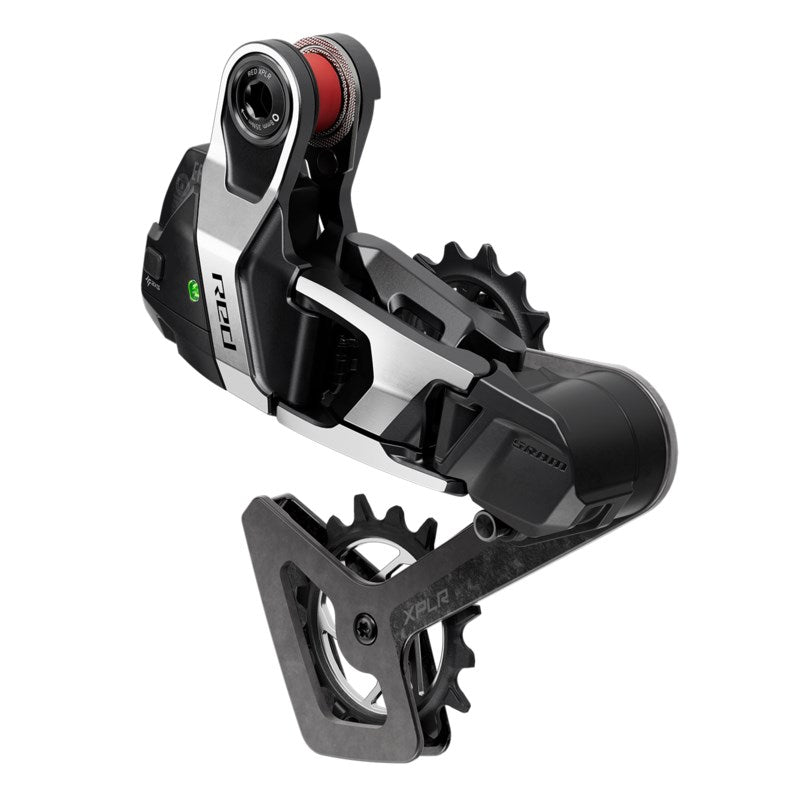 SRAM Rear Derailleur Red 1x AXS XPLR E1 13-Speed Max 46T (Battery Not Included)Gravel throws just about everything at your bike, and the RED XPLR AXS rear derailleur will happily take it all. Bring on the sticks, stones, and airport baggage abuse because the Full Mount derailleur design fits onto frames with the hangerless interface to make for the most robust and reliable gravel drivetrain possible. No adjustment screws mean setup is simpler than ever. And a surprise stick is no match for the Magic Wheel, as the debris-resistant lower pulley keeps the chain moving at all times. Purpose built for gravel, this 1x specific unit prioritizes shift precision and chain management no matter the terrain or conditions.1x specific for use with 10-46T XPLR 13-speed cassette and road Flattop chains