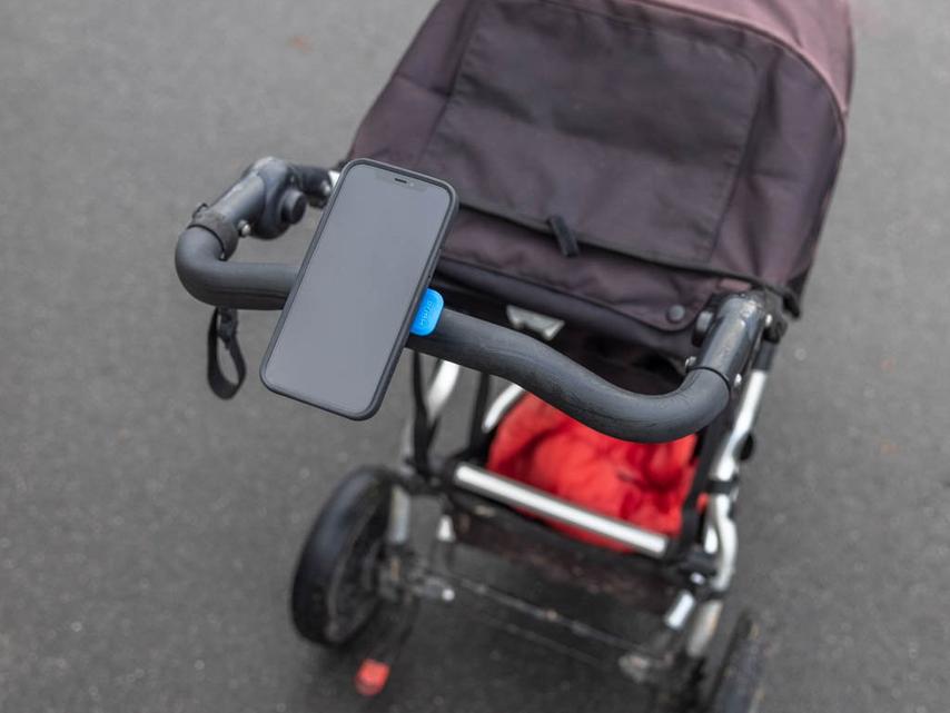 Using our patented dual-stage lock, your phone will stay secure on your golf buggy/cart or stroller/pram.