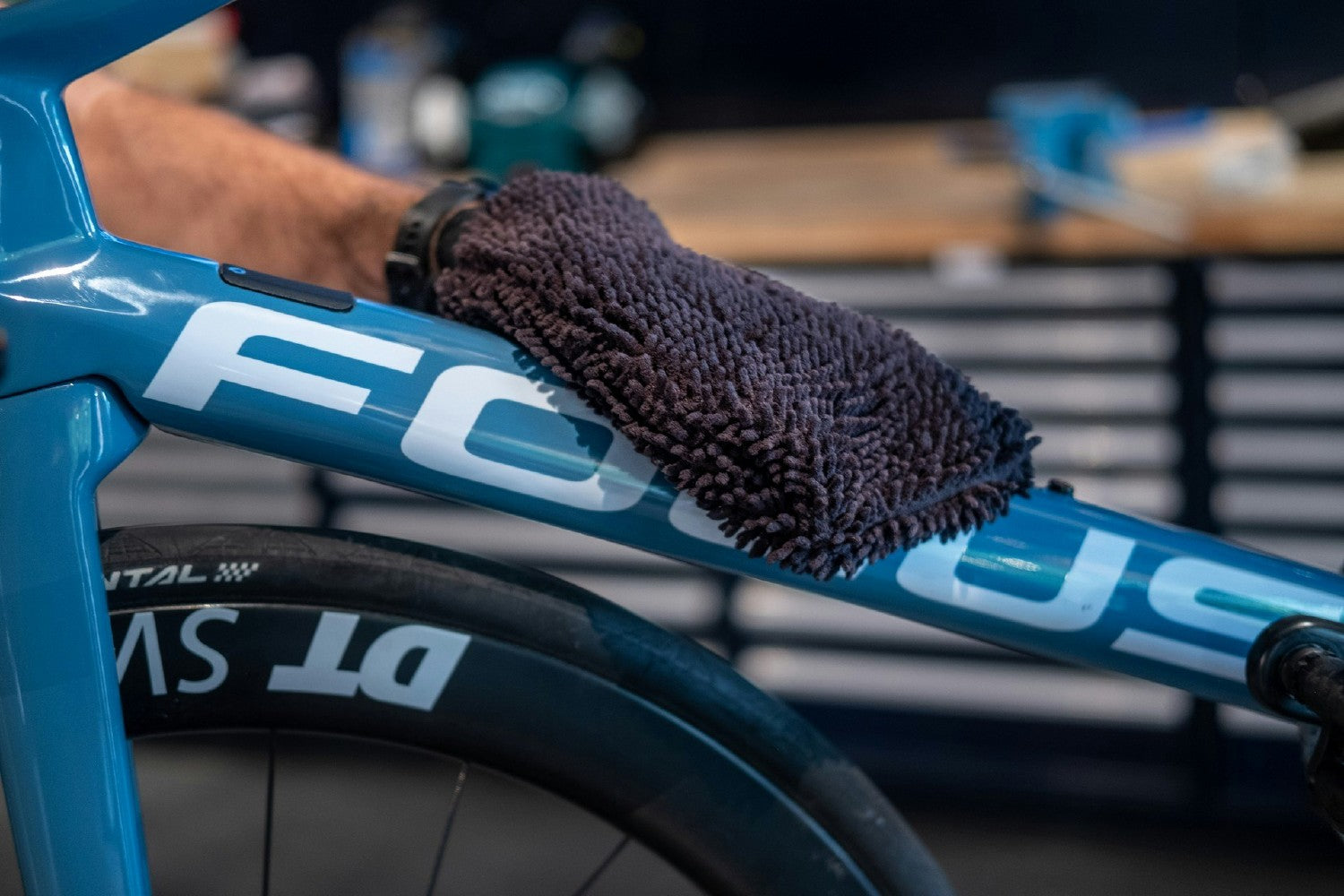 - Cuffed microfiber glove for cleaning the details of your frame and fork.