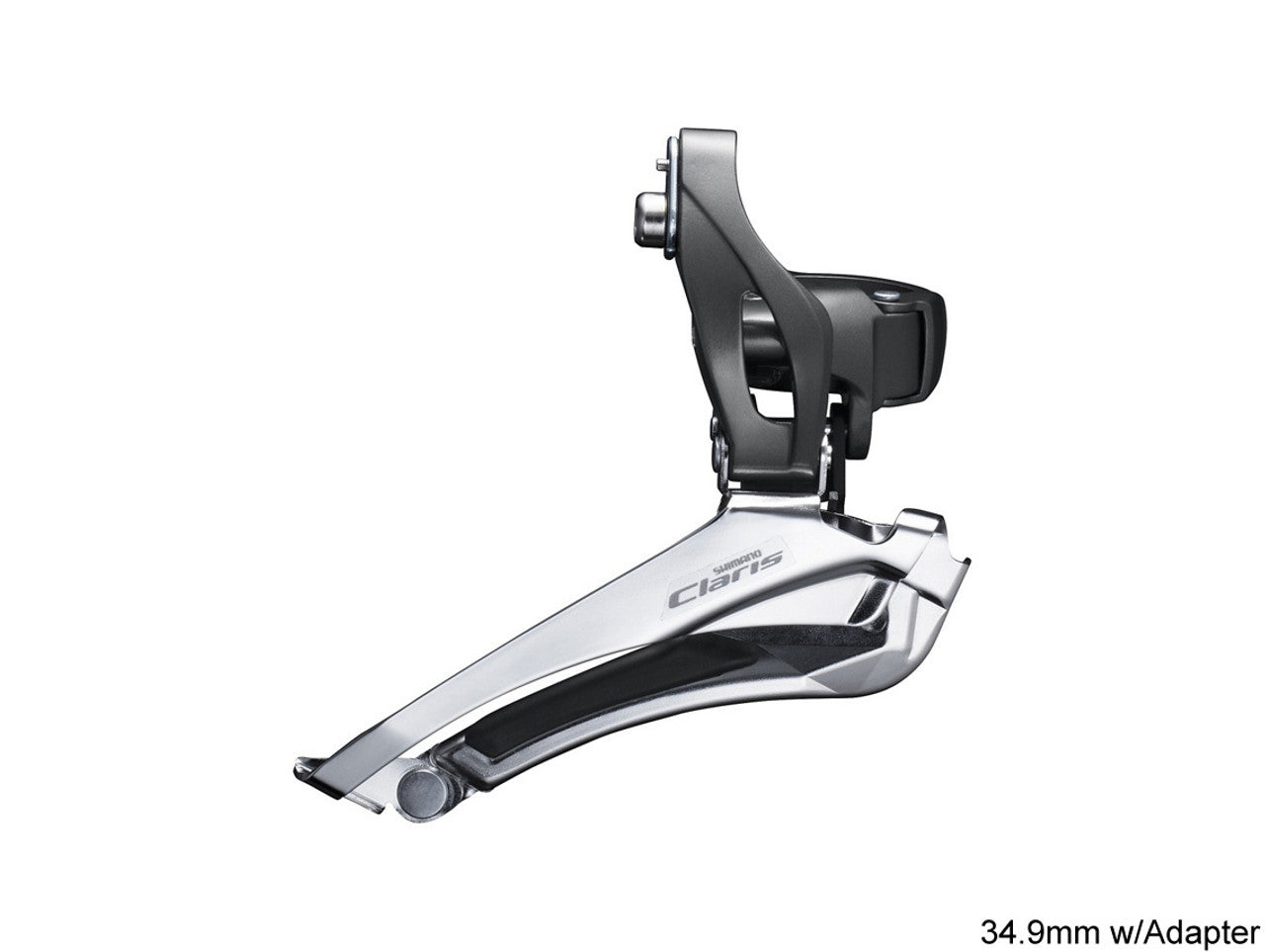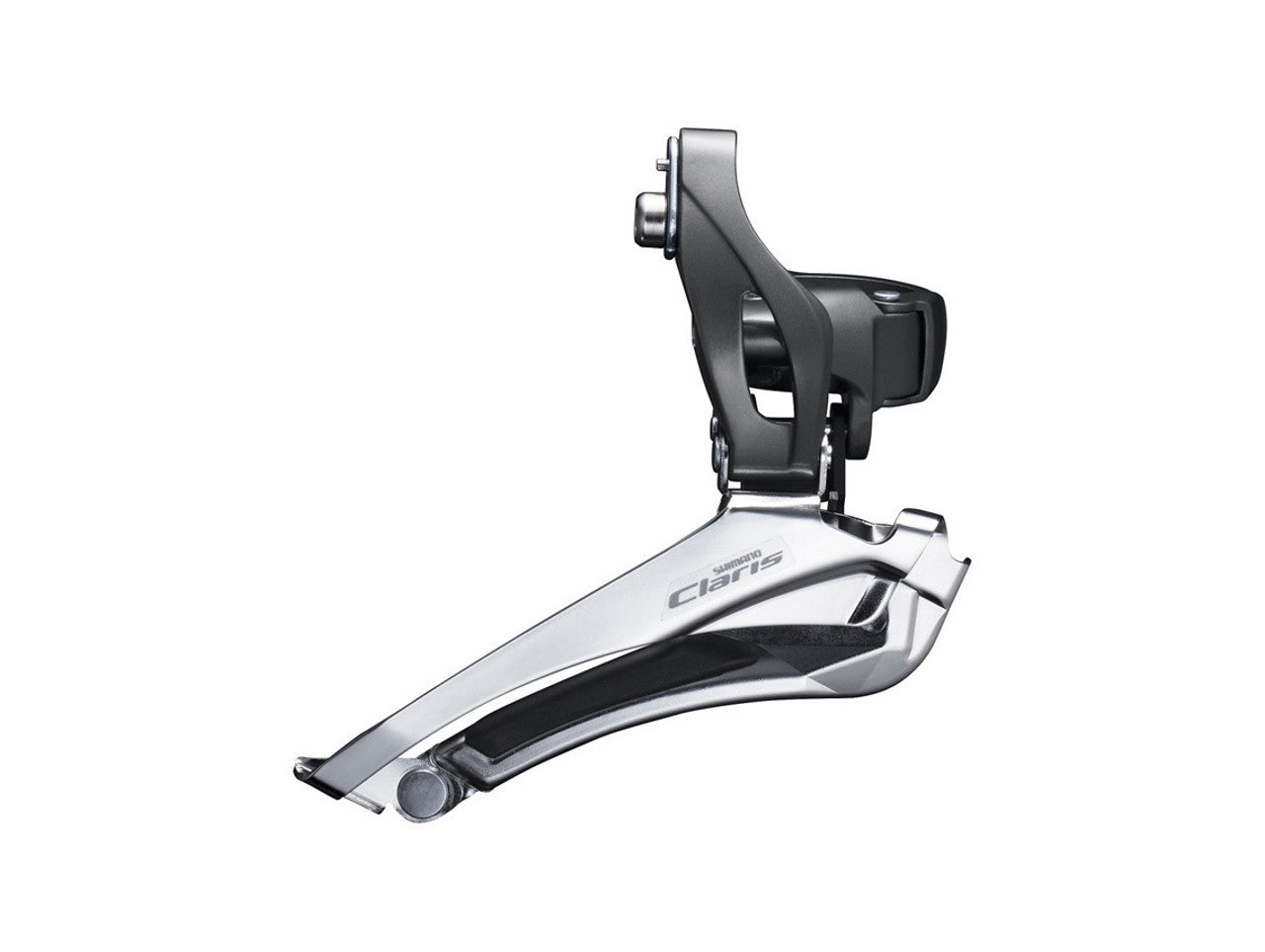 Compatible with 2x8 road drivetrains, the Shimano Claris R2000 front derailleur increases road riding enjoyment through light action and smooth gear transitions.