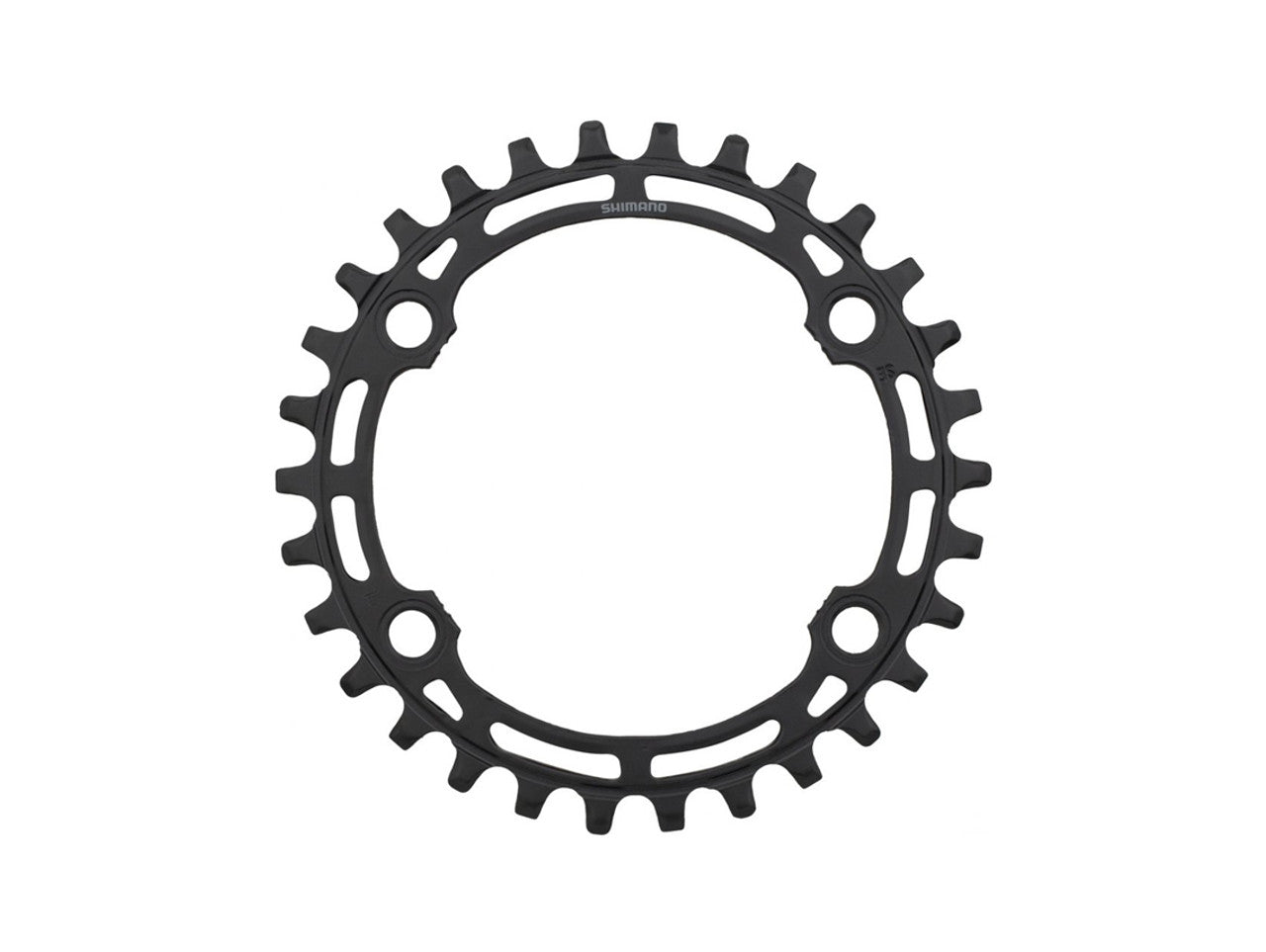 This Shimano chainring fits the Deore FC-M5100-1 crank for 1x10-speed and 1x11-speed drivetrains. It is made of steel and has a pitch circle diameter of 96 mm for 4-arm mounting.