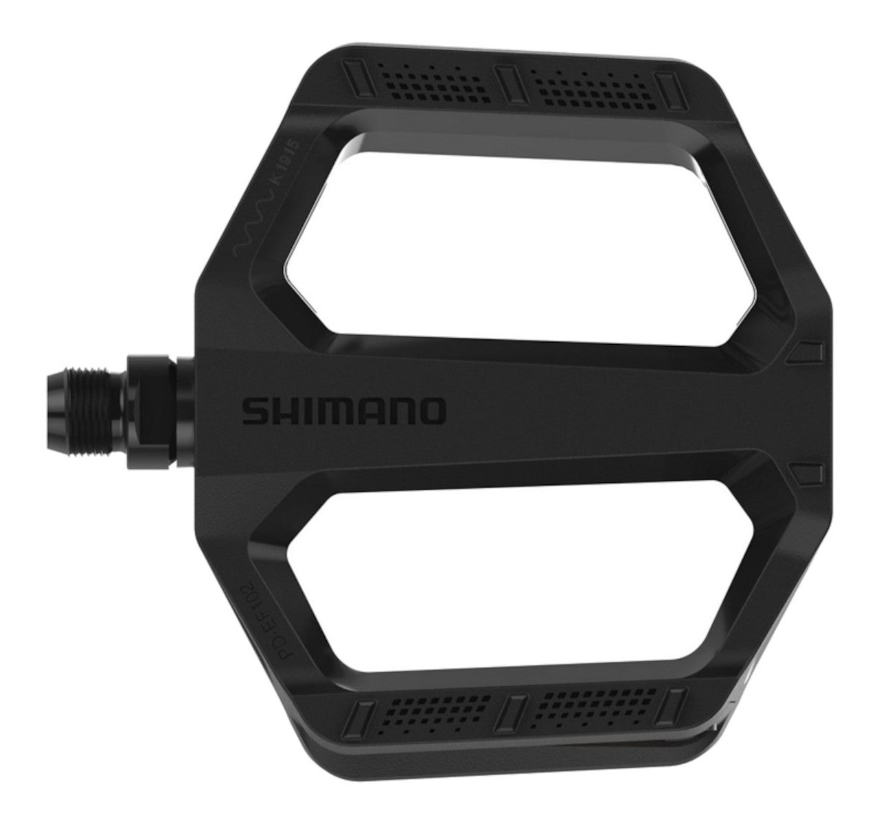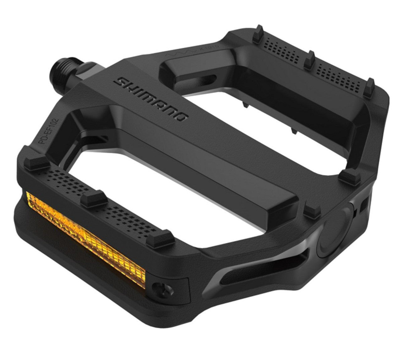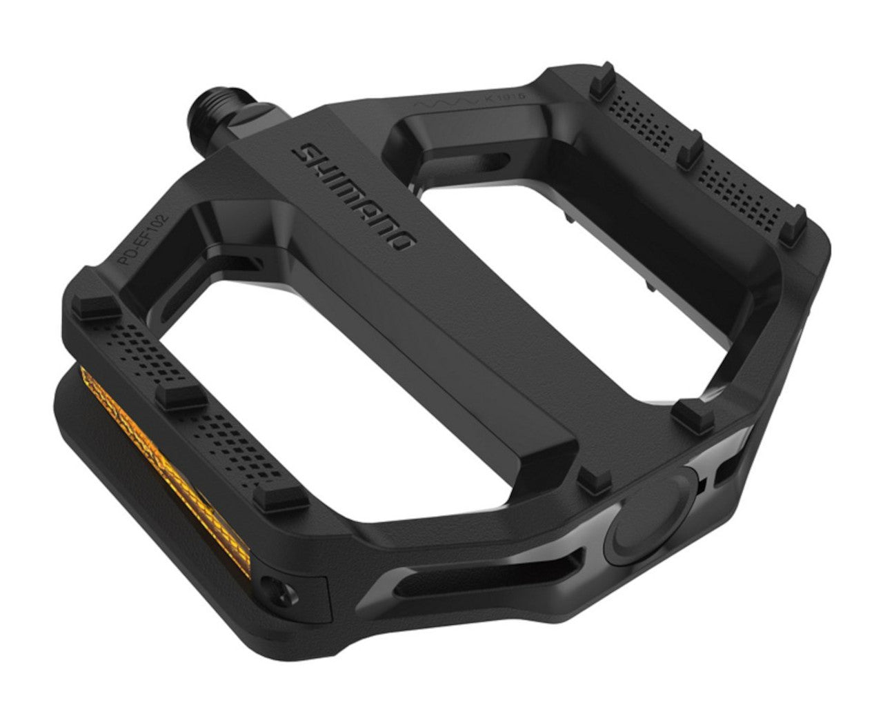 Flat Pedal For Everyday RidingShimano EF102 is our most affordable flat pedal for reliable pedaling comfort in various environments. Its wide platform with a high grip pattern feels secure underfoot. Enjoy it for many rides to come with a durably constructed axle that mimics the longevity of our higher-end MTB pedals.SHIMANO's most affordable pedalModel No: PD-EF102Colour: BlackAverage weight: 310 (pair)