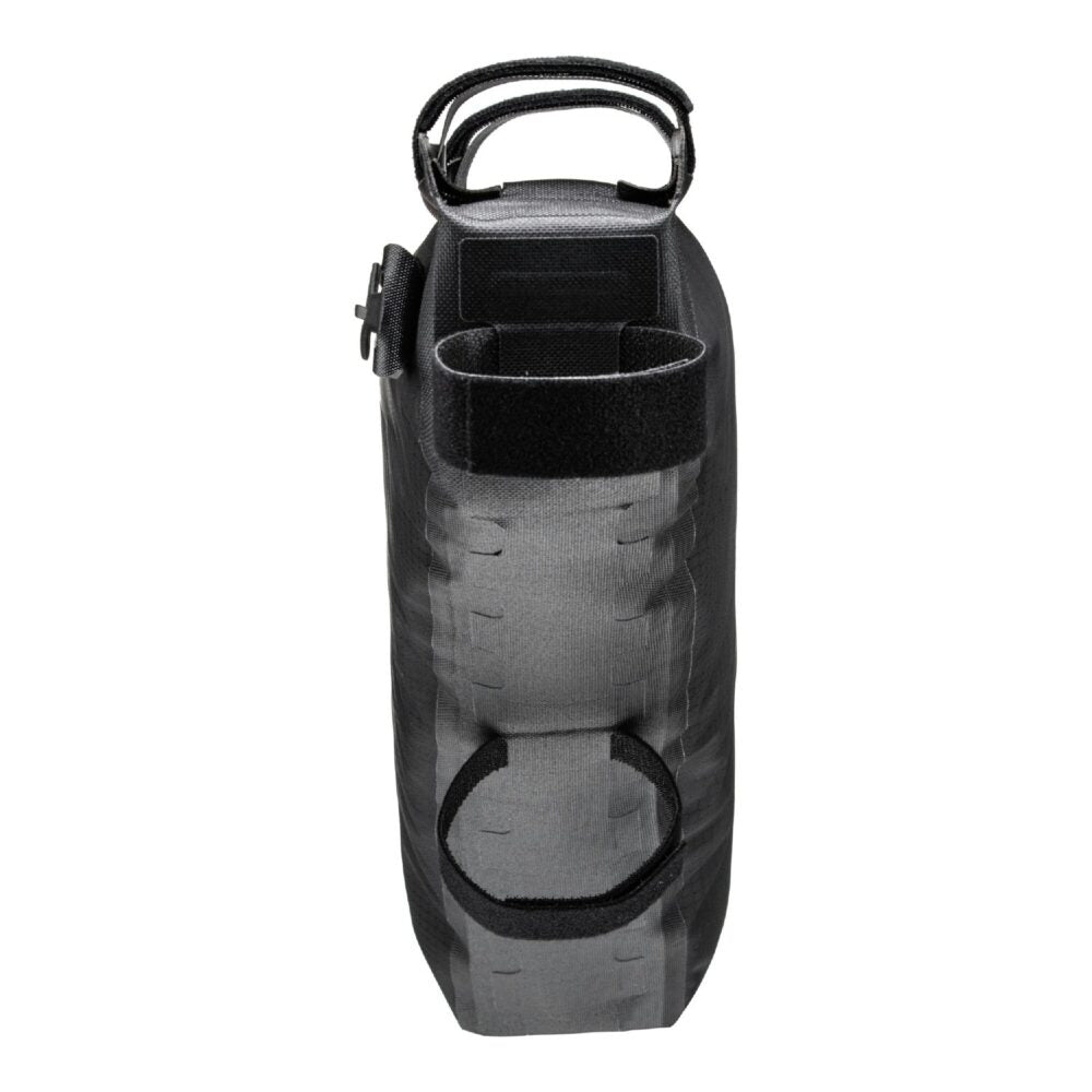 Bikepacking is also about embracing minimalism. You head off on your bike into the great outdoors, away from it all for an extended period. The amount of gear you can take is limited! The ORTLIEB Frame-Pack allows you to exploit your bike frame to create valuable stowage. Thanks to its lower center of gravity below your top tube, the Frame-Pack makes for an ideal stowage location for heavy gear such as tools, camping stoves and food supplies. The proven, waterproof nylon fabric and the waterproof zipper ensure that your things remain absolutely dry even in the most inclement of weather. Mounting the Frame-Pack with the ultra-strong Velcro straps to the top tube, seat tube and down tube is a snap. The Frame-Pack is available in a 4-liter size and a 6-liter size – depending on the size of your bike frame.