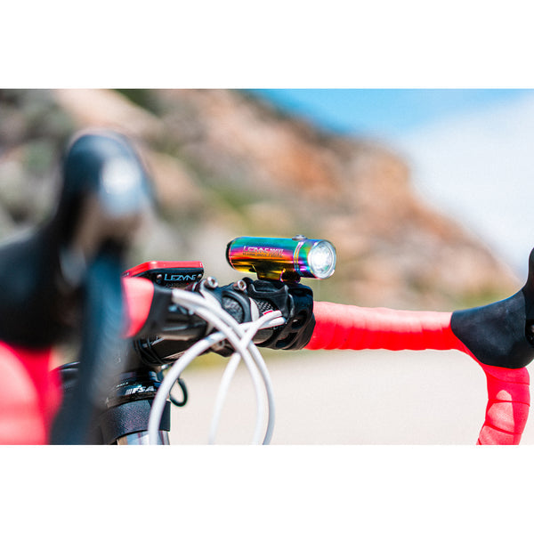 The Classic Drive 700XL Neo Metallic brings classic styling to a modern light. Offering a super bright 700 lumens of output or up to 95 hours of runtime, this front bike light is incredibly versatile—day or night. It features eight output modes, including a powerful Daytime Flash mode, and has side cutouts for 180° of visibility. A versatile strap securely mounts to most handlebars and an included micro-USB cable handles recharging.