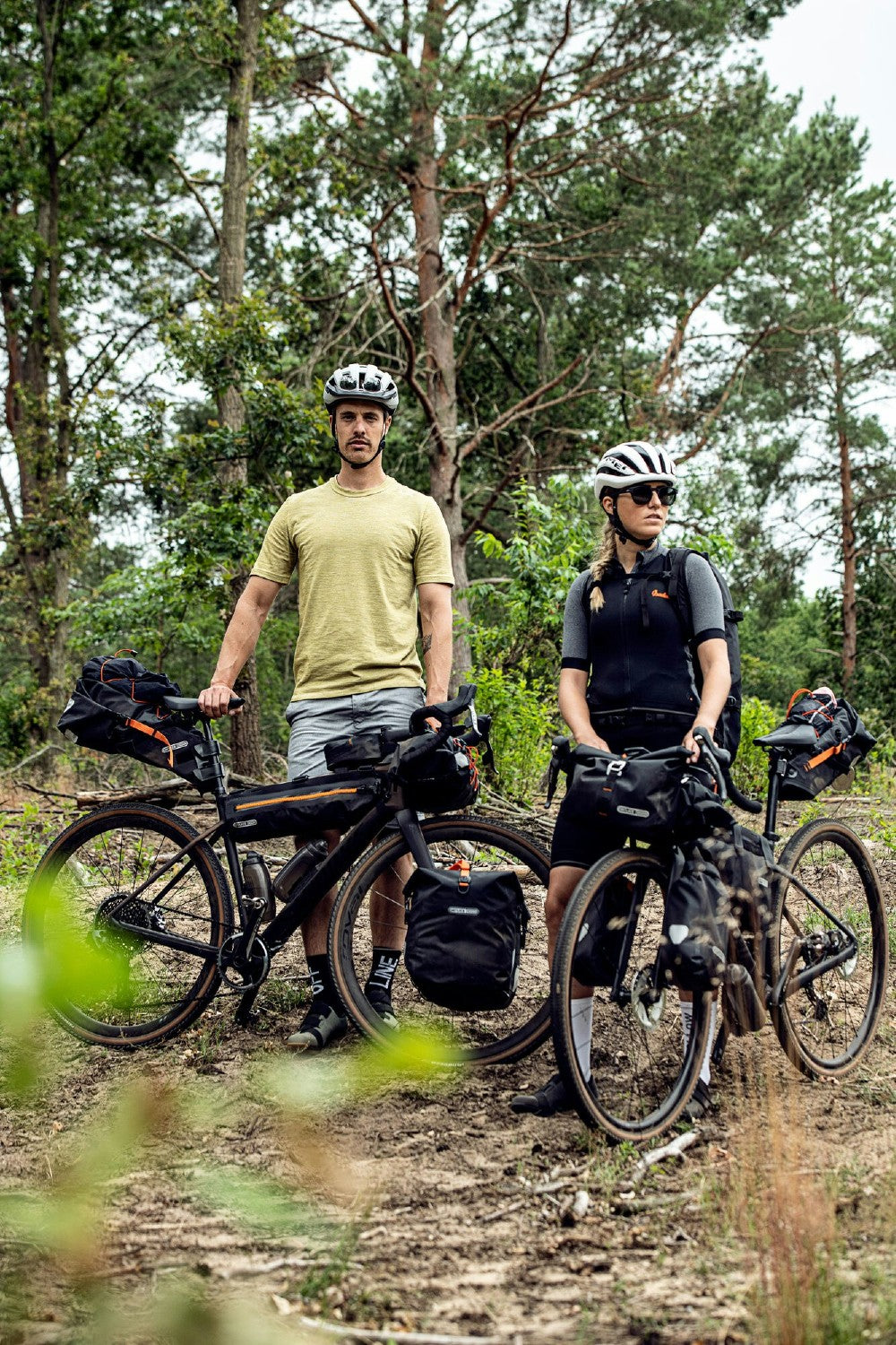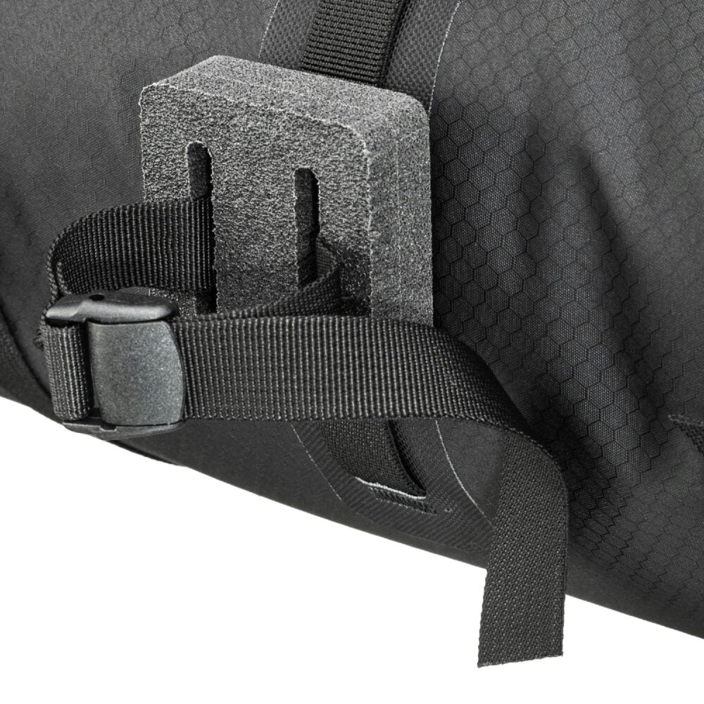 The waterproof ORTLIEB Handlebar-Pack is an indispensable item when you’re on a bikepacking tour in the great outdoors. Depending on the particular model, the Handlebar-Pack offers a payload of either 9 or 15 liters for your sleeping bag and pad. It also helps to secure a balanced distribution of gear and weight across your bike. Thanks to the roll closures at both ends, you can always gain quick access to your gear. Compression belts on the outside enable the stowing and attachment of additional equipment. Moreover, the Handlebar-Pack comes with four hooks to enable the attachment of an ORTLIEB Accessory-Pack for additional stowage space. Consisting of spacers and two strong Velcro straps, the mounting system ensures secure attachment to any handlebar type, including carbon handlebars. The pack’s stiffened interior and head-tube attachment offer additional stability – in any terrain.