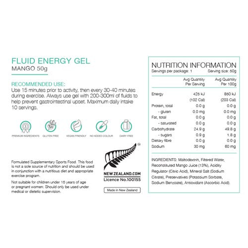 Fluid Energy Gels are more liquid than a traditional gel making them quick and easy to consume on the go.