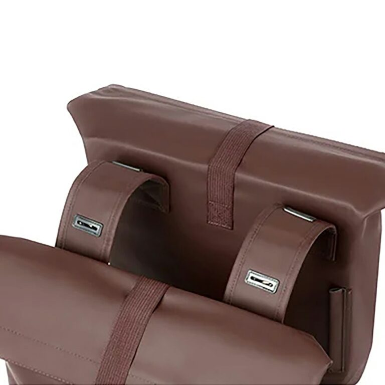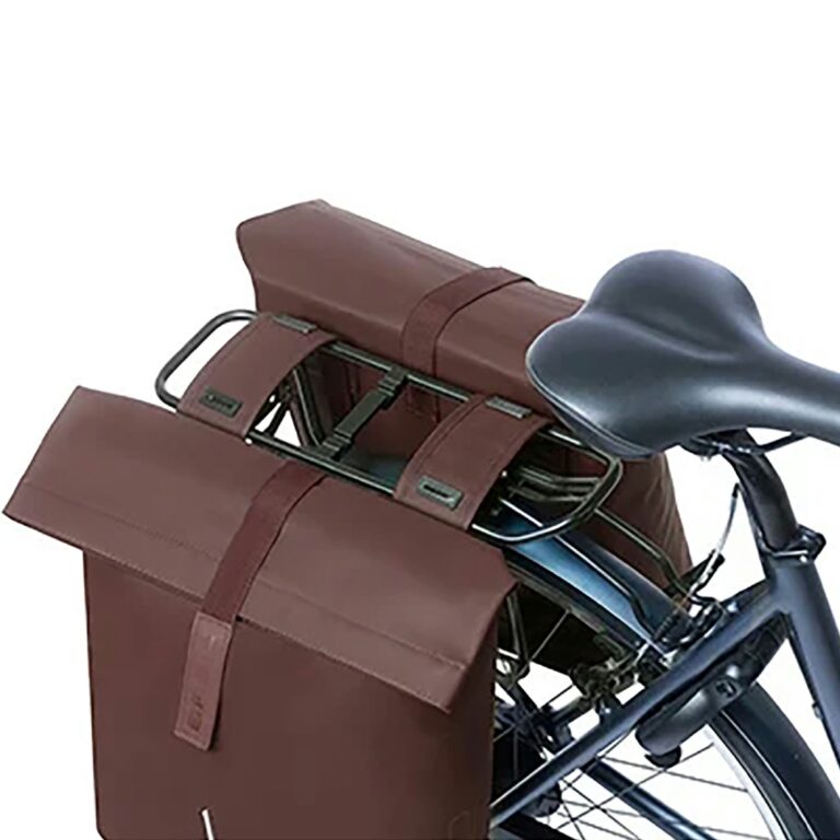 Crafted from vegan leather in a stylish roasted brown, this pannier prioritizes safety with reflective details on all sides and a mount for LED lighting. For those carrying heavy loads, the pannier can be paired with the Basil Distance Holder (sold separately), which prevents it from getting caught in your bike’s spokes.
