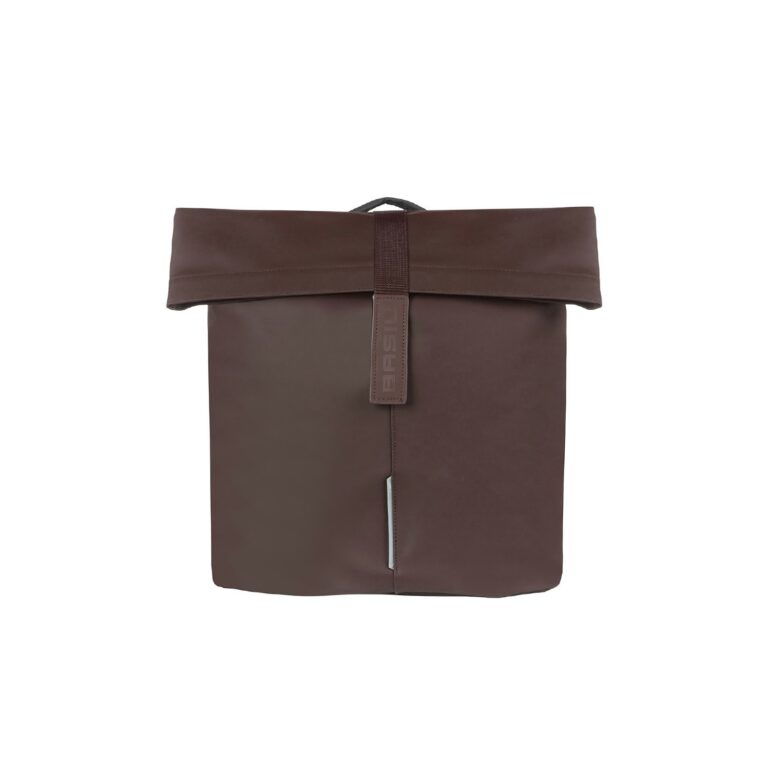 Crafted from vegan leather in roasted brown, the bag prioritizes safety with reflective detailing on all sides and a mount for LED lighting. For added convenience, consider pairing it with the Basil Distance Holder (sold separately) to prevent interference with your bike’s spokes, especially when carrying heavier items.