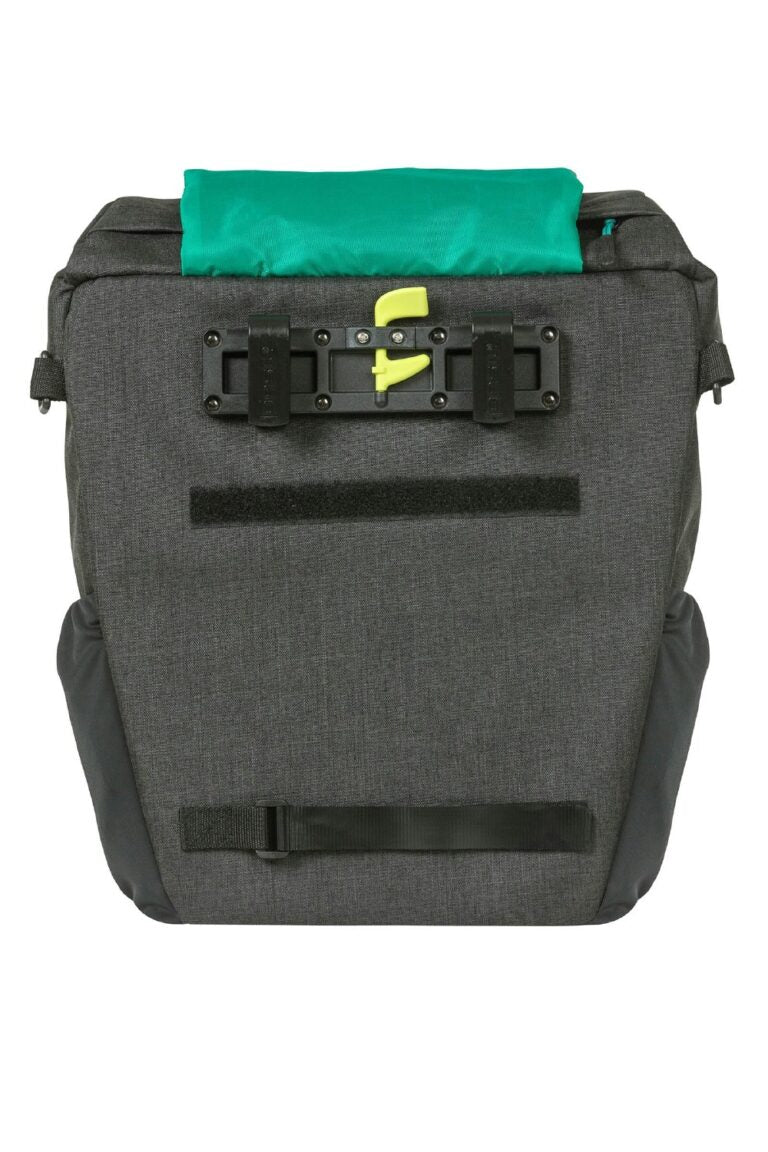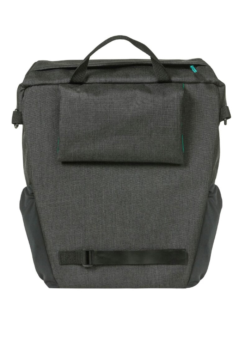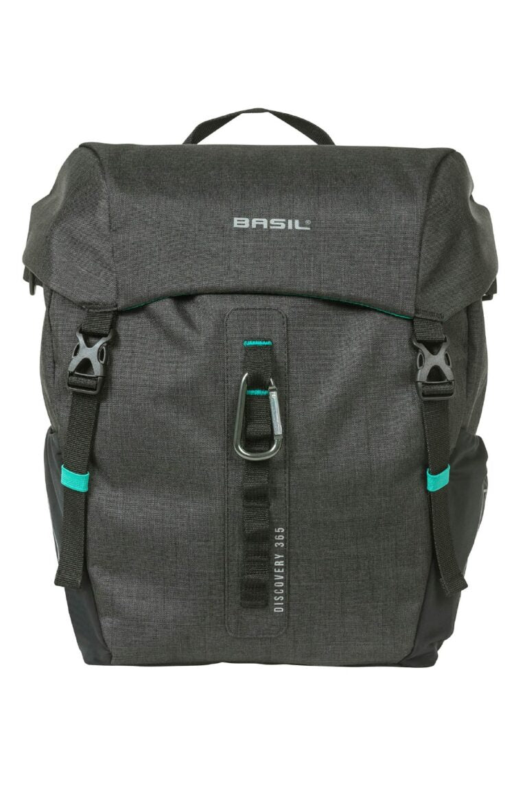 Meet your ideal cycling companion, the Basil Discovery 365D single pannier M, tailored for those seeking a sleek and functional design. The black polyester bag, featuring vibrant blue-green accents, is both sporty and compact. With its 9-litre capacity and waterproof rain cover, your essentials remain protected throughout your journey. Effortlessly attach the pannier to your bicycle’s carrier rack using the convenient Hook-On system. Stay organized with zipped pockets, a practical drawstring, and elasticated side pockets, while the carabiner secures your accessories. Plus, the reflective panels on three sides enhance your visibility in low-light conditions.