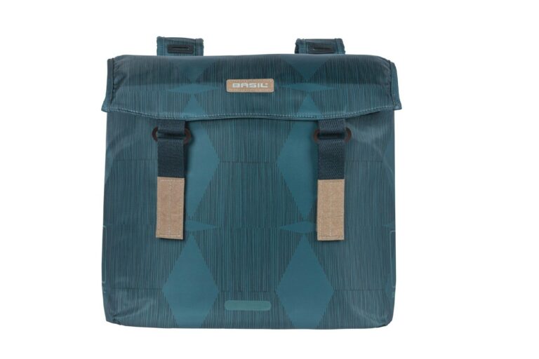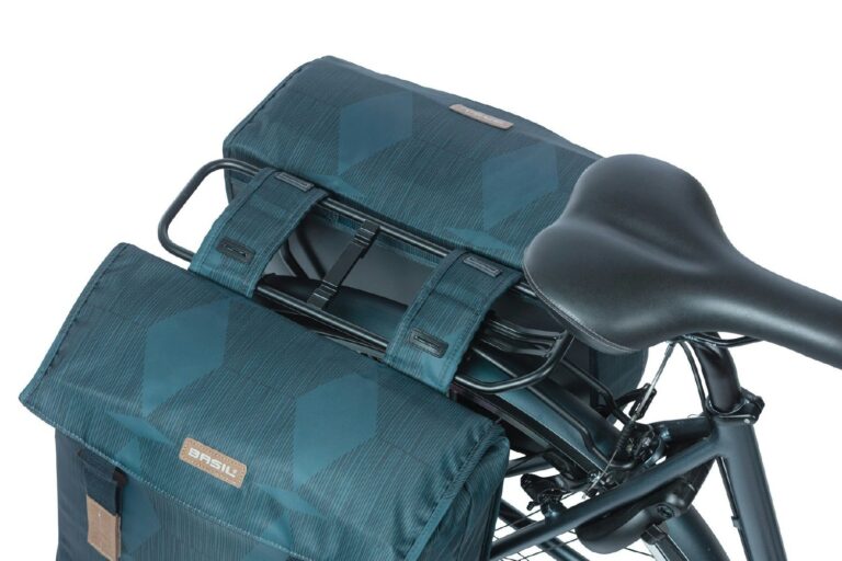 Make your bike stylishly functional with the Basil Elegance double bicycle bag. Chateau taupe elegance, practical water-resistance, and eco-friendly materials, all easily attachable with versatile systems.