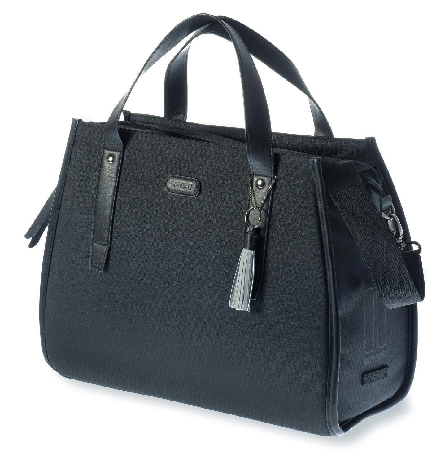 The Basil Noir Business Bag presents a sophisticated storage solution for your bicycle, seamlessly transforming into a versatile hand and shoulder bag once detached from your bike. Whether your day’s agenda is packed with diverse activities, this bag serves as the perfect biking accessory, catering to your storage needs comprehensively. Its remarkable snakeskin motif and simulated leather accents establish it as a chic option, guaranteeing a harmonious blend of fashion and premium utility. Concerned about rain? Worry not, as the waterproof fabrics guarantee the preservation of your bag’s contents even during heavy showers. Inside the bag, a spacious capacity of 17 litres and a thoughtfully arranged interior provide dedicated space for all your miscellaneous items. The inclusion of a zip closure and multiple compact compartments ensures that even your most awkward personal belongings find their designated places with ease. Retrieving your essentials becomes effortless and swift. With its sturdy construction and detachable shoulder straps, the bag effortlessly transitions between being a bicycle bag, handbag, and shoulder bag. This adaptability adds a significant notch to its versatility. Additionally, the inclusion of the hook-on system streamlines the attachment process to your luggage carrier, eliminating the need for cumbersome plates and components. Emphasizing safety as a top priority, the bag incorporates reflective details, guaranteeing your visibility during low-light conditions or darkness. This feature proves invaluable if your schedule entails early mornings or late evenings at the office. For enhanced visibility, the option to integrate additional LED lighting exists. Should you seek coordinating accessories, the comprehensive Basil Noir range awaits your exploration online.