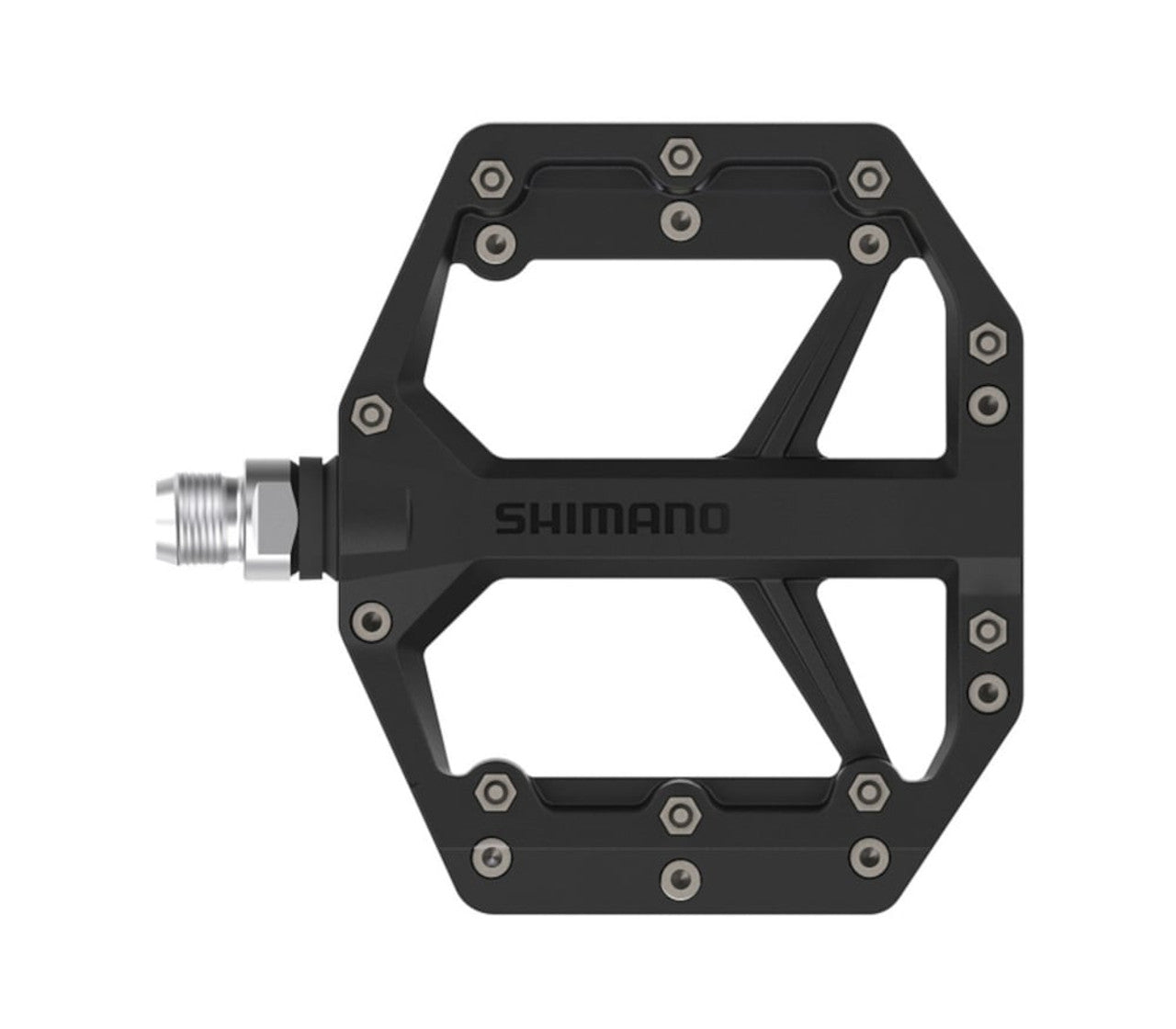 Flat Pedal for Casual Trail RidingGR400 are grippy flat pedals with a trail riding platform shape that feels stable and secure underfoot. Experience even better bike control by pairing with SHIMANO GR series shoes.Model No: PD-GR400Series: SLX M7100 SeriesColour: BlackAverage weight: 400 (pair)Remarks 9 pins per platform