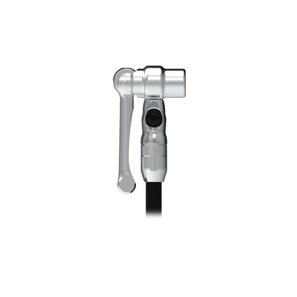 The Presta Pro Head is a premium, fully CNC-machined pump head designed to pair perfectly with Lezyne HP (high-pressure) and HV (high-volume) pumps. An easy-to-use, slip-on pump head designed for Presta-only applications - the ergonomic, slim, aluminum lever is actuated to securely lock the Presta Pro Head onto the valve for reliable high-airflow inflation. The innovative Valve Bleed System (VBS) engages the valve pin allowing for fine-tuning tire pressure- Simply push the VBS button to release air from the tire to achieve the desired pressure. Engineered using corrosion-resistant brass internals and a robust aluminum body with a gloss silver anodized finish.