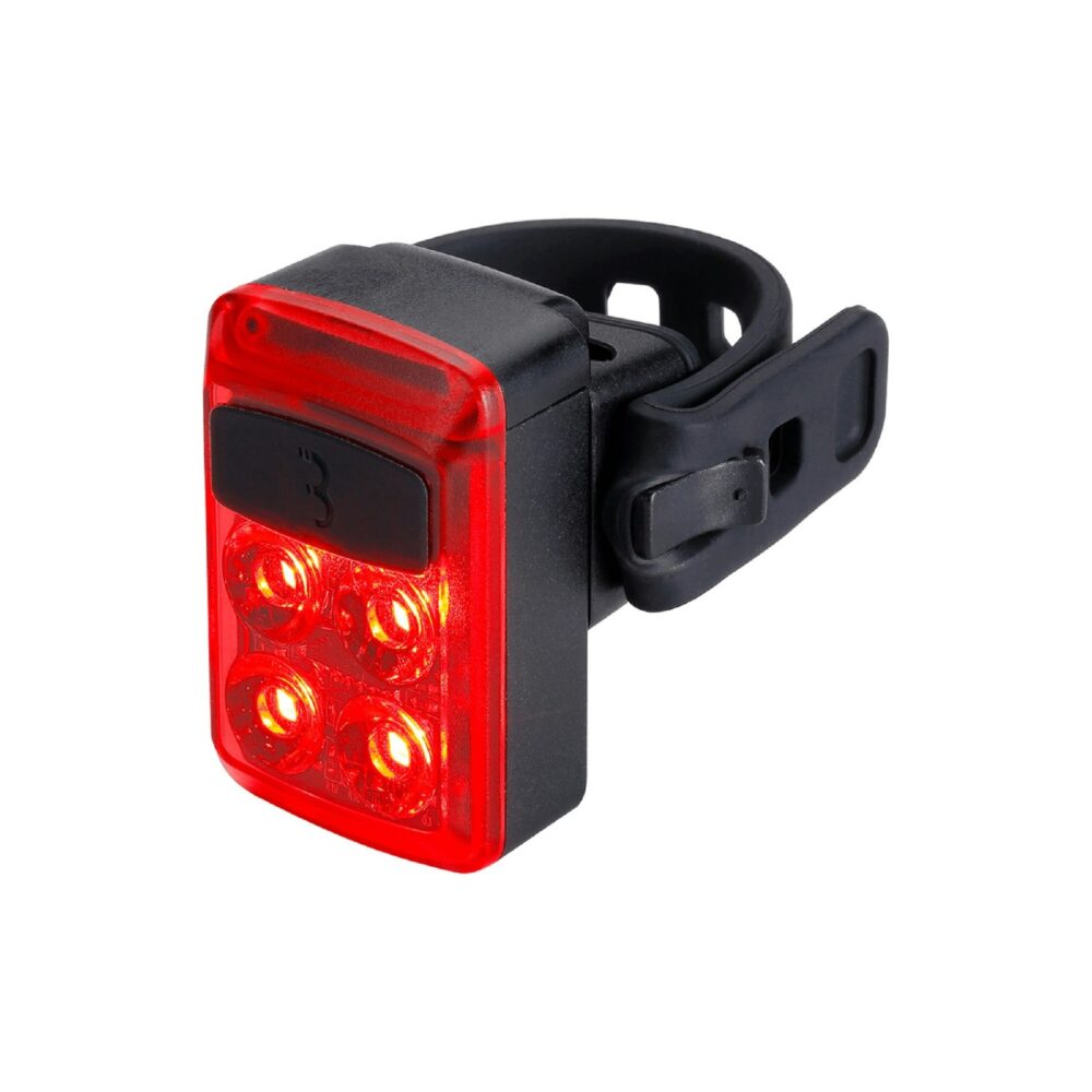 - Compact USB rechargeable rearlight for visibility with multiple mounting options.