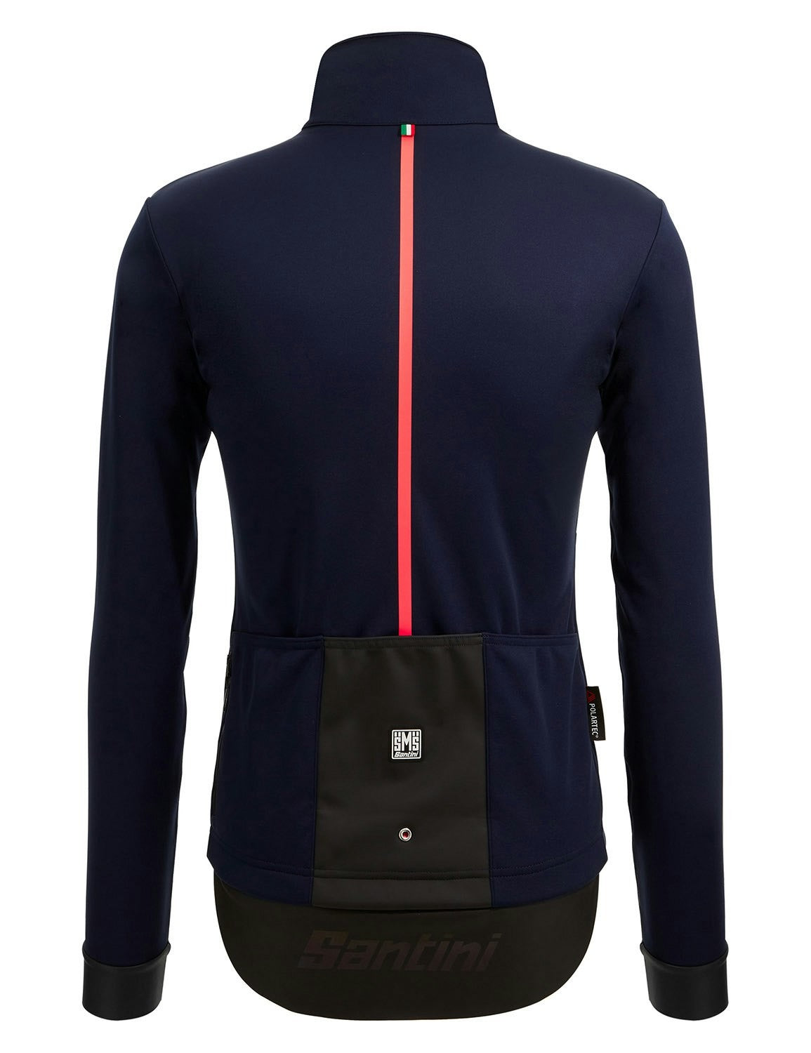 Reflective shoulder band, back inserts, and reflective Santini logo ensure maximum safety in low visibility.