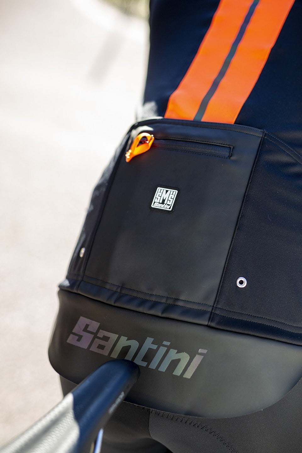 Reflective shoulder band, back insert and reflective Santini logo on the back tail to ensure maximum safety in the darkest hours