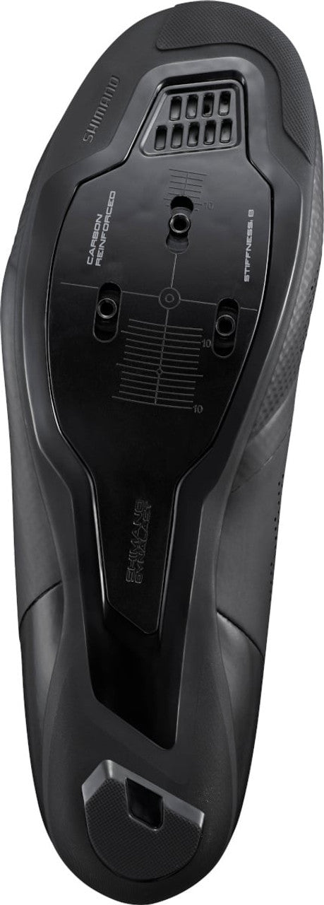 The RC502 shoes are lightweight performance shoes infused with Shimano's S-Phyre DNA. Mesh/TPU and a synthetic leather material-covered upper in an optimized part of the shoe provides a comfortable lightweight fit. It is this surround wrapping upper structure which reduces overlap and the integrated seamless midsole and upper construction set a new level of fit, stability and lightweight performance. A low stack height carbon fibre reinforced nylon midsole stabilizes your foot while maximizing efficient power transfer. Adjustments using the BOA L6 dial on the instep strap quickly and comfortably secures a wide range of foot shapes.. Integrated seamless midsole and upper construction