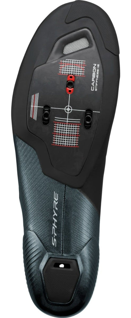 Flagship Racing shoe EvolvedWear Shimano's new Shimano S-Phyre RC903 Road Shoes and be confident.The Lightweight and breathable microfiber leather upper providesoptimal fit and superior comfort when you are striving to perform at your best. Power TransmissionShimano's S-PHYRE range has one goal: to maximize power transmission by delivering more performance per gram. Power transmission is a huge priority with the new S-PHYRE road competition shoe. With that in mind you can be certain that their SH-RC903 S-Phyre Road Shoes embody everything about Shimano's passion to create the best cycling footwear on the planet and to ultimately deliver the results you want and ignite your performance. Accelerating PerformanceThe external curved heel cup suppresses foot twist and roll and is essential to Anti-Twist Stabilisation. The shoes are built to handle the intense twisting forces caused by explosive acceleration. Foot movement studies and pedalling visualizations and athlete feedback have been used to redesign the shoe's structure to support more aggressive acceleration. Comfort is EssentialThe makers of Shimano's S-Phyre RC903 Road Shoes know that comfort is an essential element to power output, not an afterthought. How a shoe fits and feels defines its performance. Super light. Incredibly fast. Close to the action. The SH-RC903 shoes features a sleek, low profile crossover lacing pattern to gracefully secure the foot as well as the surrounded wrapping upper creates a totally engineered fit for all riders. Shimano have perfected Silvadur silver ion technology to ensure you stay fresh as a daisy all day long. Boa IP2 Micro-Adjustment DialsThe unified sole and upper construction set a new level of fit, pedalling stability, rigidity and weight reduction while the dual independent Boa IP2 dials allow quick and precise micro-adjustment even on-the-go.. Shimano S-Phyre SH-RC903 Road Shoes. Technology: Silvadur silver ion technology helps prevent odour and staining. Closure: 2 BOA (Li2), BOA PowerZone Guide: allows quick and precise micro-adjustments and security. Upper Material: Microfiber Synthetic Leather 360 surround wrapping creates a supremely engineered fit. Outsole Material: TPU. Midsole Material: carbon fibre composite. Standard Insole: high density cup insole with adaptable arch pads. Anti-Twist Stabilization: secures optimal foot positioning for intense acceleration and high tempo cadences. Function-Specific Zones: scientifically optimized upper materials maximize fit and pedalling performance. Integrated Seamless Midsole and Upper Construction: set a new level of fit, stability and performance Technologies. Stiffness Rating: 12. Upper: Microfiber Synthetic Leather. External Heel Cup. Carbon Sole/ Mid Sole: carbon fibre composite. Hollow-Channel: Lightweight, ultra-rigid hollow outsole. Expanded Cleat Adjustment Range
