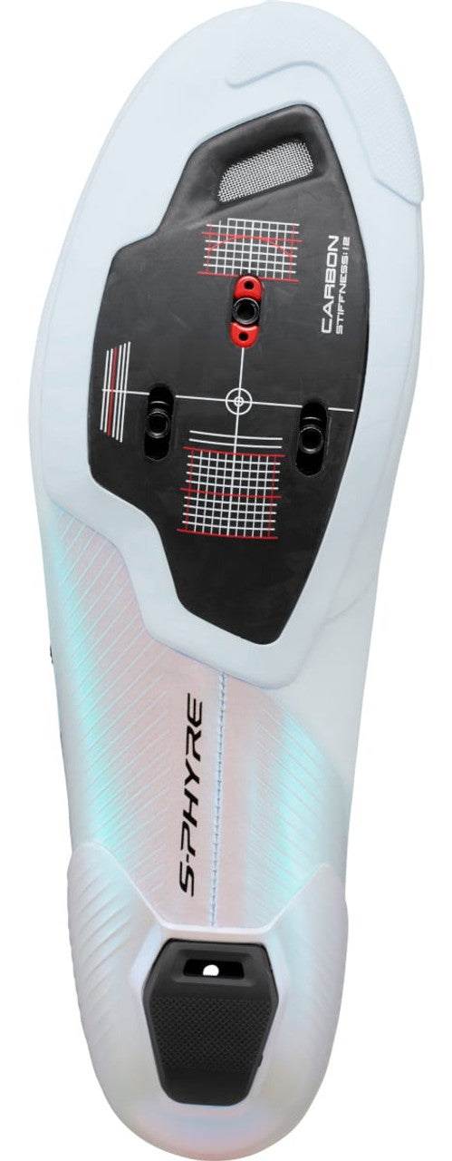 Flagship Racing shoe EvolvedWear Shimano's new Shimano S-Phyre RC903 Road Shoes and be confident.The Lightweight and breathable microfiber leather upper providesoptimal fit and superior comfort when you are striving to perform at your best.Power TransmissionShimano's S-PHYRE range has one goal: to maximize power transmission by delivering more performance per gram. Power transmission is a huge priority with the new S-PHYRE road competition shoe. With that in mind you can be certain that their SH-RC903 S-Phyre Road Shoes embody everything about Shimano's passion to create the best cycling footwear on the planet and to ultimately deliver the results you want and ignite your performance.Accelerating PerformanceThe external curved heel cup suppresses foot twist and roll and is essential to Anti-Twist Stabilisation. The shoes are built to handle the intense twisting forces caused by explosive acceleration. Foot movement studies and pedalling visualizations and athlete feedback have been used to redesign the shoe's structure to support more aggressive acceleration.Comfort is EssentialThe makers of Shimano's S-Phyre RC903 Road Shoes know that comfort is an essential element to power output, not an afterthought. How a shoe fits and feels defines its performance. Super light. Incredibly fast. Close to the action. The SH-RC903 shoes features a sleek, low profile crossover lacing pattern to gracefully secure the foot as well as the surrounded wrapping upper creates a totally engineered fit for all riders. Shimano have perfected Silvadur silver ion technology to ensure you stay fresh as a daisy all day long.Boa IP2 Micro-Adjustment DialsThe unified sole and upper construction set a new level of fit, pedalling stability, rigidity and weight reduction while the dual independent Boa IP2 dials allow quick and precise micro-adjustment even on-the-go.Shimano S-Phyre SH-RC903 Road ShoesTechnology: Silvadur silver ion technology helps prevent odour and stainingClosure: 2 BOA (Li2), BOA PowerZone Guide: allows quick and precise micro-adjustments and securityUpper Material: Microfiber Synthetic Leather 360 surround wrapping creates a supremely engineered fitOutsole Material: TPUMidsole Material: carbon fibre compositeStandard Insole: high density cup insole with adaptable arch padsAnti-Twist Stabilization: secures optimal foot positioning for intense acceleration and high tempo cadencesFunction-Specific Zones: scientifically optimized upper materials maximize fit and pedalling performanceIntegrated Seamless Midsole and Upper Construction: set a new level of fit, stability and performanceTechnologiesStiffness Rating: 12Upper: Microfiber Synthetic LeatherExternal Heel CupCarbon Sole/ Mid Sole: carbon fibre compositeHollow-Channel: Lightweight, ultra-rigid hollow outsoleExpanded Cleat Adjustment Range