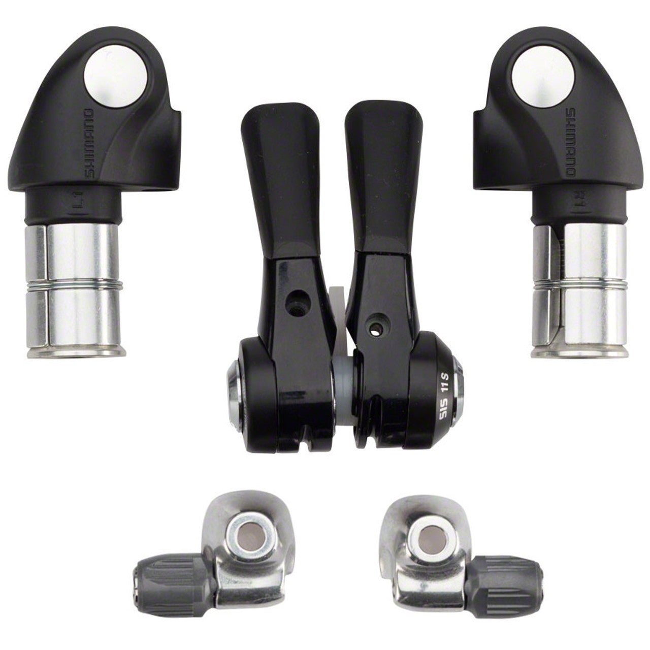 Specifically designed for use on time trial handle bars, this Shimano Dura-Ace SL-BSR1 Bar End Shift Lever Set puts multiple control positions at your fingertips for fast, accurate, effortless shifts. Now you can minimise movement and achieve maximum aero efficiency at the same time. The levers come complete with SP41 gear cables, which are lubricated internally along their length with low-friction silicon grease to reduce cable friction and are fully compatible with 11-speed drivetrains. The kit also provides all mounting hardware required and a handy User Manual. Once you have these precision-engineered, index bar-end gear shift levers installed you'll know how a flawless shift performance with almost no mechanical drag should feel and you'll be so glad you made the transition.