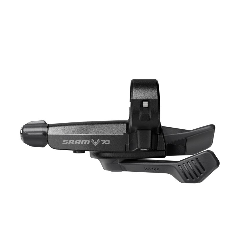 SRAM Shifter Eagle 70 Single Click Trigger 12 speed rear black with integrated clampThe feel, look and shift quality of the Eagle 70 Shifter allow you to ride in a whole new way. Optimized for better cable pull with a revised mount position and new T-Type actuation, 70 is able to offer a higher quality of shift than previous mechanical systems. Created for the specific demands of E-MTB, the Eagle 70 Single Click shifter is designed to help eliminate premature chain wear by limiting the shift to a single click. Aesthetically driven to pair with Stealth brakes, the Eagle 70 Single Click Shifter is available with an integrated handlebar clamp.Modern shift ergonomics.