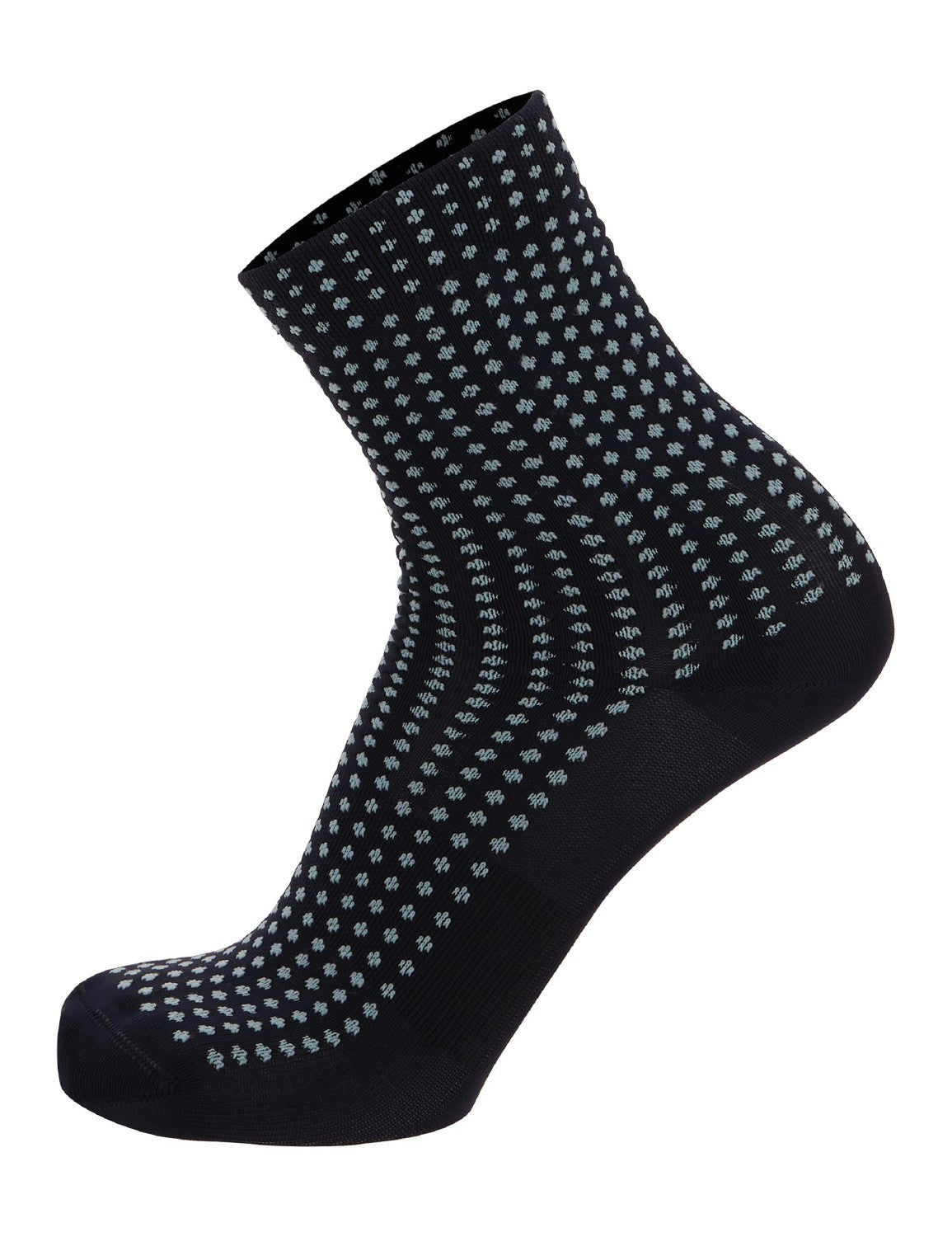 Introducing the Sfera Medium Profile Sock, our ultimate product offering. Crafted with utmost precision from a blend of 96% Poliammide and 4% Elastan, this extraordinary sock boasts a compressive cuff for impeccable fit, as well as heel and toe support. Its stylish polka dots design effortlessly complements Santini’s wide range of colors. Experience the epitome of perfection – a true essential for every wardrobe!