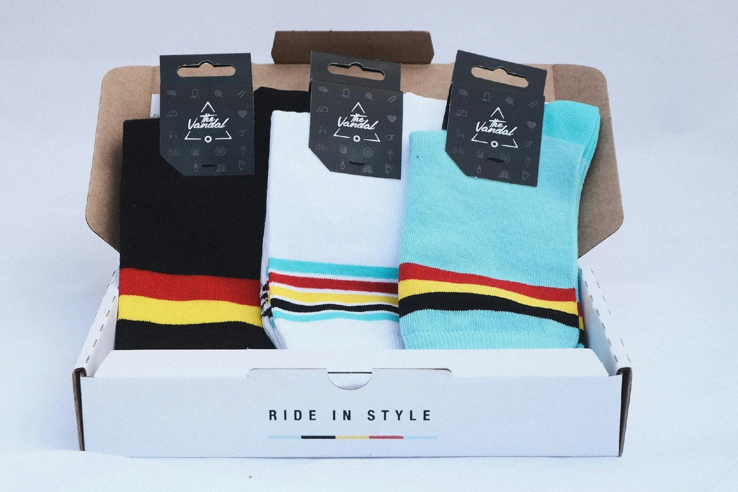 Not sure what to gift a cycling fan? Then a Belgian Cycling Socks and The Vandal gift box full of comfortable socks might be a hit! Including the black, white and iconic blue tricolore socks are pleasant to wear and come packaged in a nice gift box.
