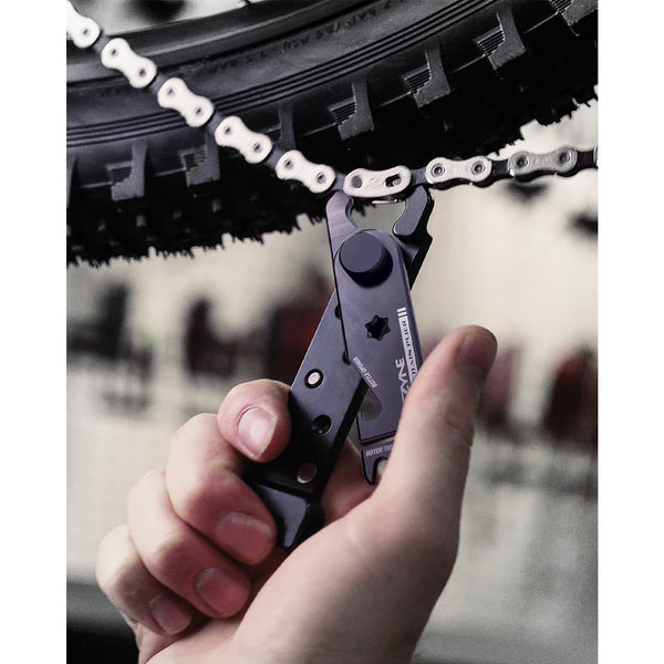 The Multi Chain Pliers are a professional grade, versatile bike chain multi-tool engineered for a variety of road or trailside repairs. They’re constructed from machined aluminum and feature an integrated quick-link tool, chain breaker, valve core tool, bottle opener, rotor aligner, and magnetic holders for up to two spare quick links. Its slim design allows for maximum portability, and it’s engineered for long-lasting use. It also features an anodized finish and a hardened steel chain breaker pin. Mountain bikers, road cyclists, and gravel grinders will all find its versatility highly useful, whether in the workshop or out on the road or trail.