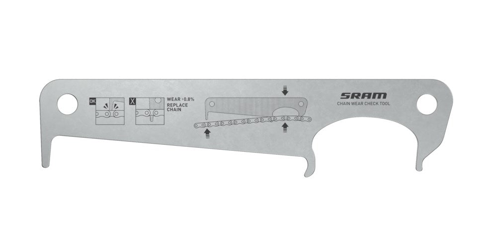 SRAM Chain Wear Check Tool (for 0.8% wear chains)The SRAM chain wear indicator tool is compatible will all the existing SRAM chain models and this includes HARD CHROME and non-HARD CHROME chain technology with a 0.8% wear critical specification.