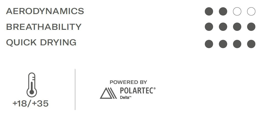 The unique knit construction of the Polartec® Delta fabric, using both hydrophobic and hydrophilic yarns, enables advanced control of moisture dispersal, a critical factor in managing body temperature while training indoor.